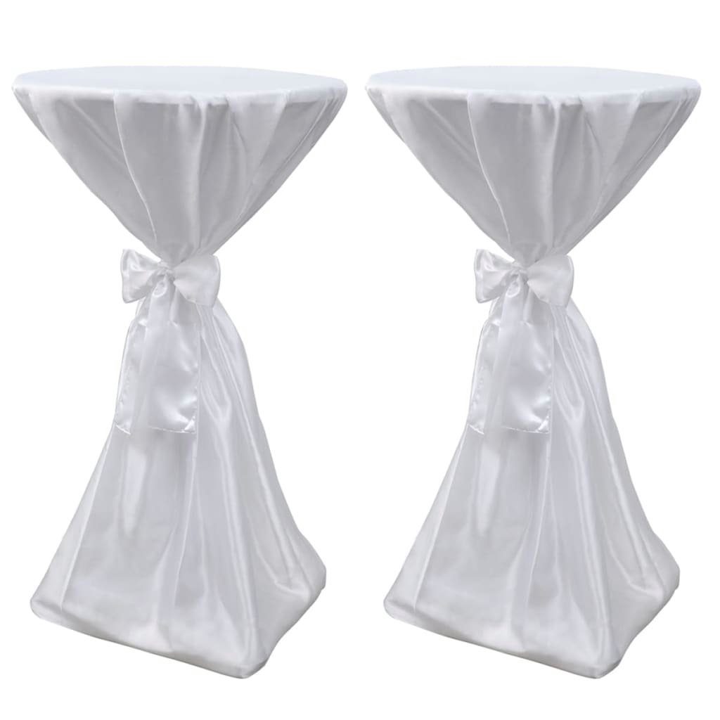 Diese weiße bodenlange Tischhusse ist für runde Stehtische bei Hochzeiten, Parties oder anderen Gelegenheiten geeignet.