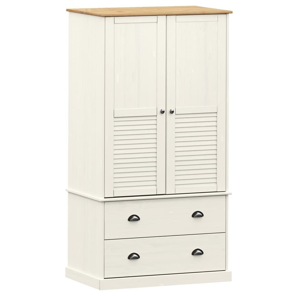 Dieser klassische Holzschrank bietet reichlich Stauraum, um deine Kleidung, Schuhe und Accessoires ordentlich zu verstauen.