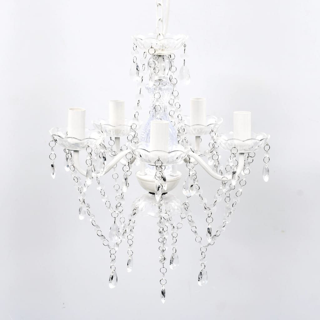 Dieser Lüster ha wunderschön verarbeiteten Kristalle und Acrylarme, Wandlampen und Perlen. Du kannst sowohl Glühbirnen als auch LED-Leuchtmittel verwenden.