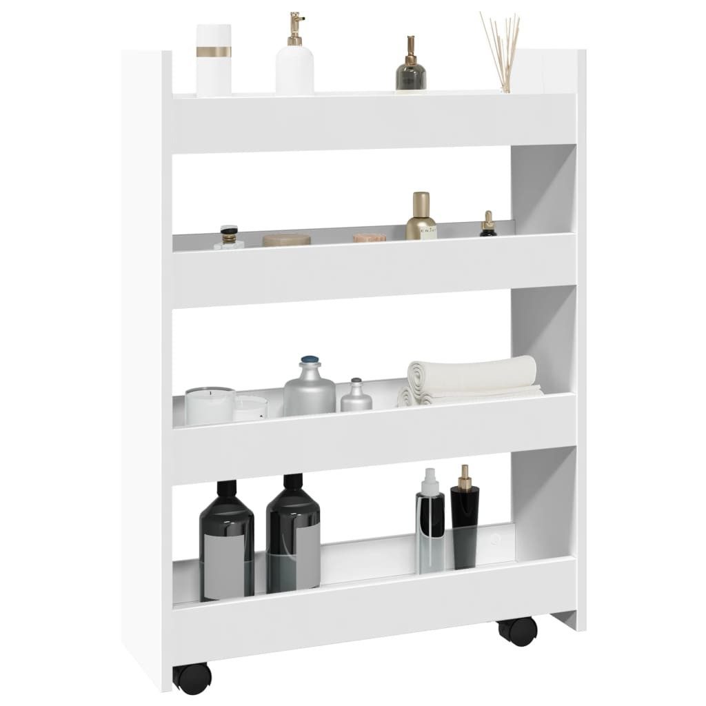 Der schmale Küchenwagen bietet viel Platz, um verschiedene Alltagssachen gut organisiert und in Reichweite aufzubewahren.