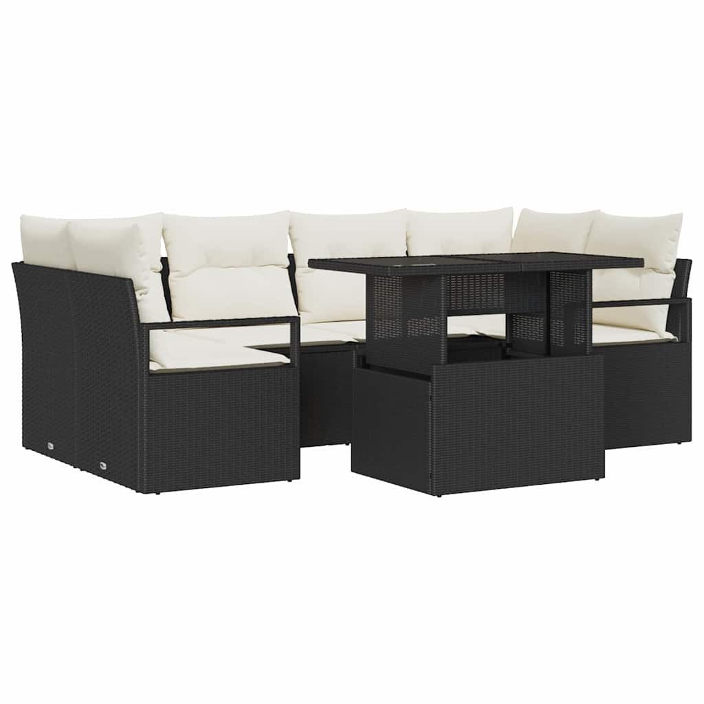 Modellbezeichnung | Garten-Sofa-Set 7 pcs Schwarz und Creme 100 x 55 x 73 cm |