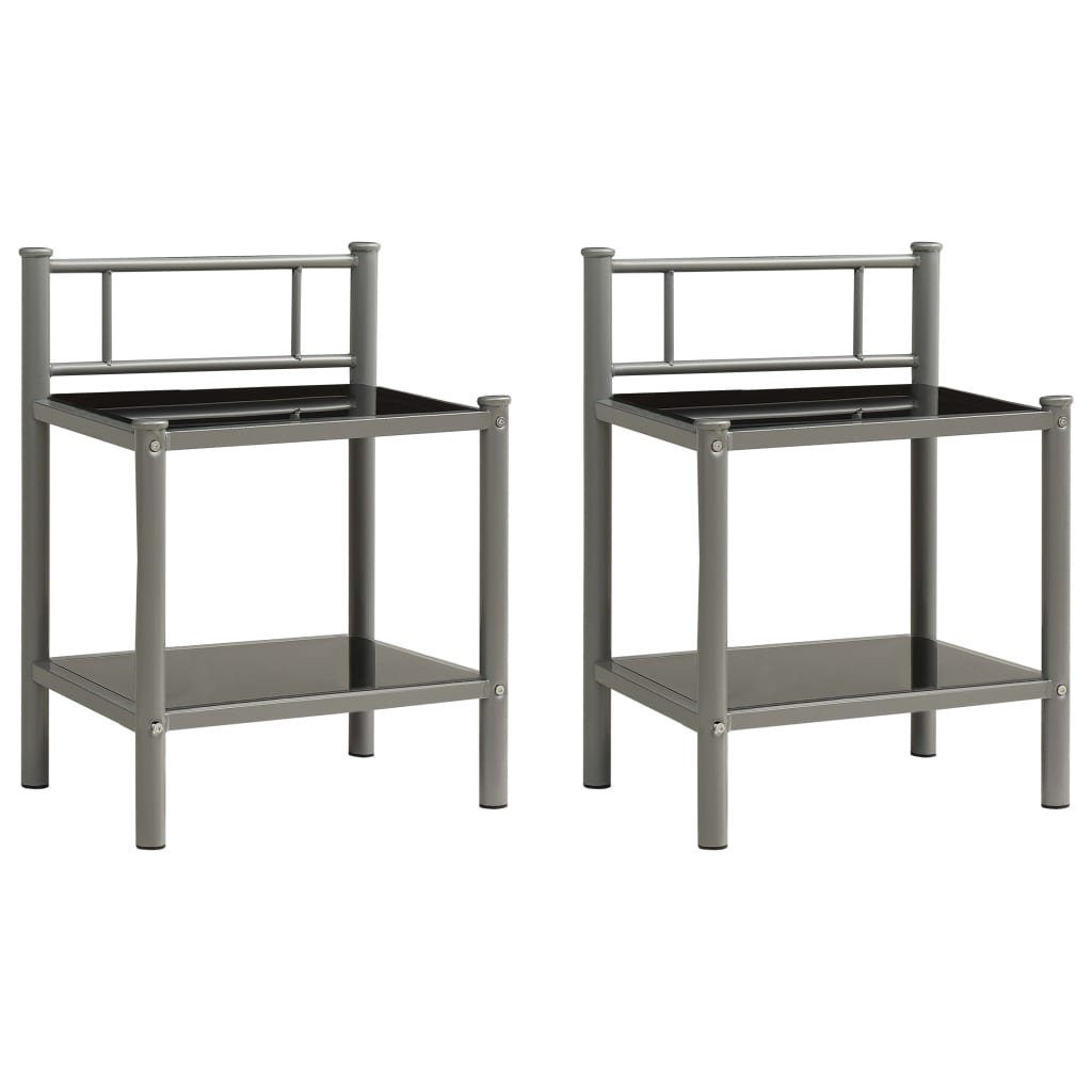 Modellbezeichnung | Nachttische 2 Stk. Grau und Schwarz Metall und Glas |