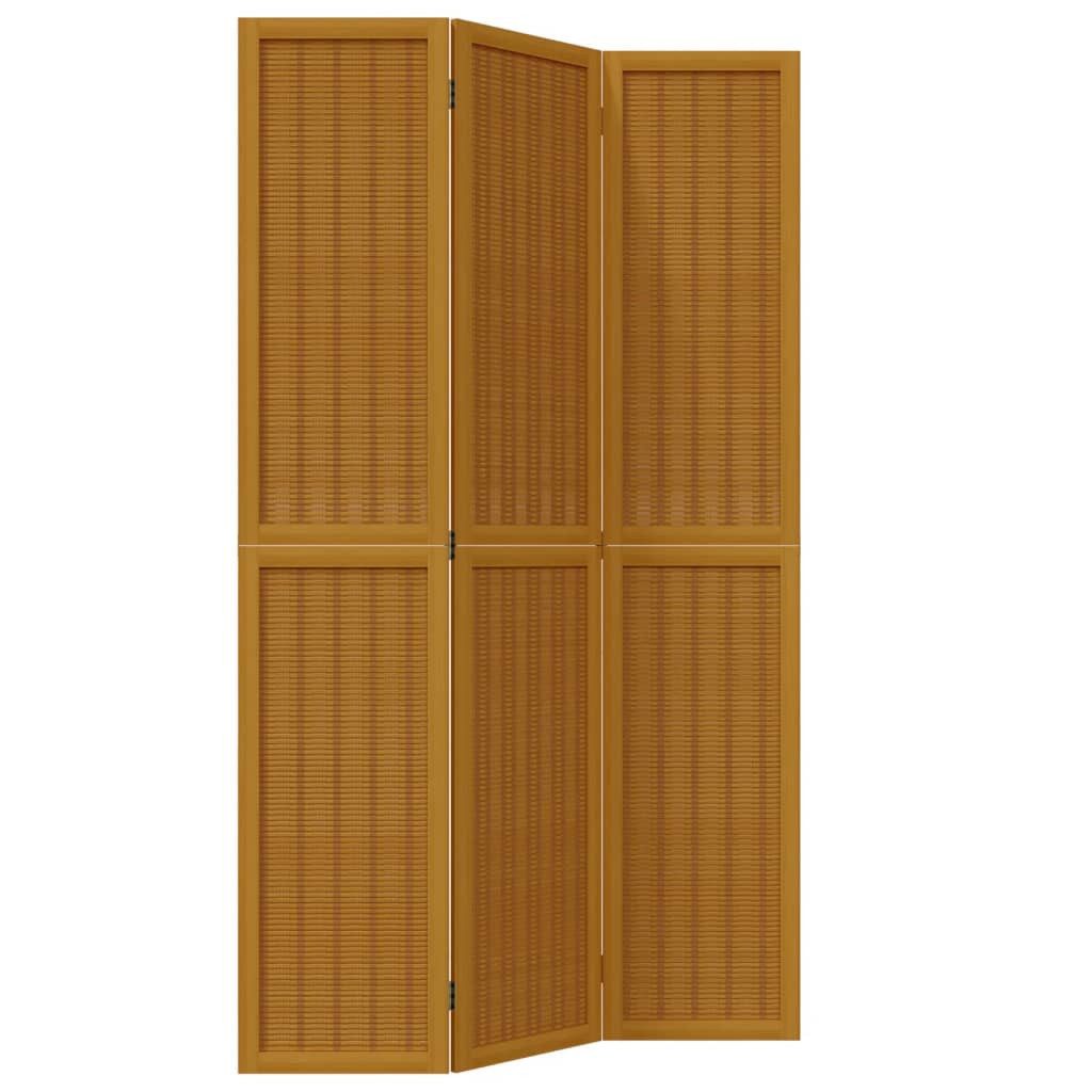 Der Sichtschutz ist aus natürlichem Bambus gefertigt, wodurch er leicht zu reinigen und strapazierfähig ist.Robuster Rahmen: Der Rahmen aus massivem Paulownia-Holz sorgt für Robustheit und Stabilität. Paulownia-Massivholz ist ein wunderschönes Naturmaterial. Paulowniaholz ist widerstandsfähig gegen Schädlingsbefall und Verrottung.Flexibel und einfach faltbar: Die Paravent-Teile sind jeweils durch 3 Metallscharniere miteinander verbunden. Die oberen und unteren Paneele dieser spanischen Wand sind durch verborgene 2-in-1-Scharniere verbunden. Der Raumtrenner kann also leicht bis zu einem gewissen Grad zusammengeklappt werden; dadurch spart er bei Nichtgebrauch Platz.