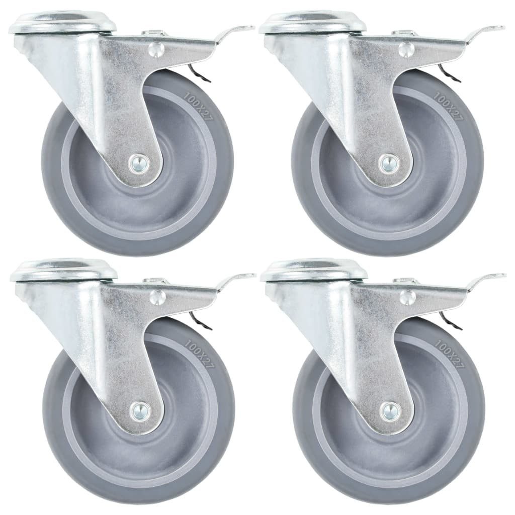 Die Lieferung umfasst 4 Lenkrollen mit Bolzenloch und Doppelbremsen.