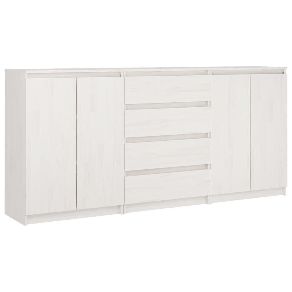 Diese Beistellschränke aus Holz strahlen einen rustikalen Charme aus und sind eine großartige Ergänzung zu Ihrem Wohnraum. Diese Schränke bestehen aus massivem Kiefernholz, was ihre Robustheit und Langlebigkeit gewährleistet. Das Set besteht aus 2 Schränken mit 2 Türen und 3 Fächern sowie 1 Schrank mit 4 Schubladen, die reichlich Platz zur Verfügung stellen, um verschiedene Sachen ordentlich und griffbereit aufzubewahren. Die robuste Oberplatte eignet sich ideal, um Dekoartikel, Fotorahmen oder Topfpflanzen zur Schau zu stellen. Darüber hinaus lassen sich die Beistellschränke mit einem feuchten Tuch ganz einfach reinigen. Werten Sie Ihr Interieur mit diesen eleganten Schränken auf!