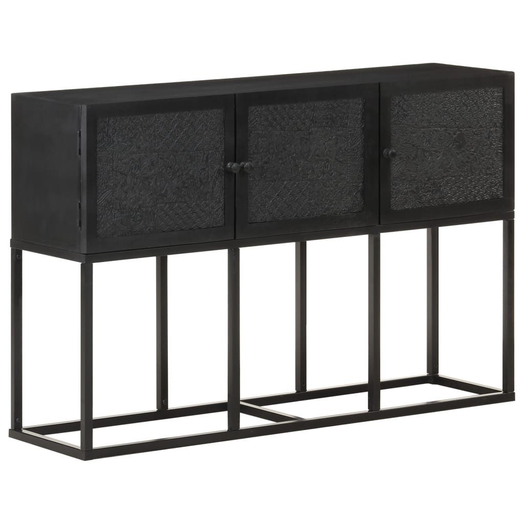 Der Beistellschrank besteht aus massivem holz, einem tropischen Hartholz, das belastbar und verschleißfest ist; somit ist das Sideboard stabil und langlebig. Der pulverbeschichtete Eisenrahmen sorgt für zusätzliche Stabilität. Dieser Schrank verfügt über 3 Türen, die reichlich Stauraum bieten. Darüber hinaus lassen sich auf der robusten Oberplatte aus Holz Dekoartikel wie Fotorahmen, Topfpflanzen, Vasen usw. zur Schau stellen.