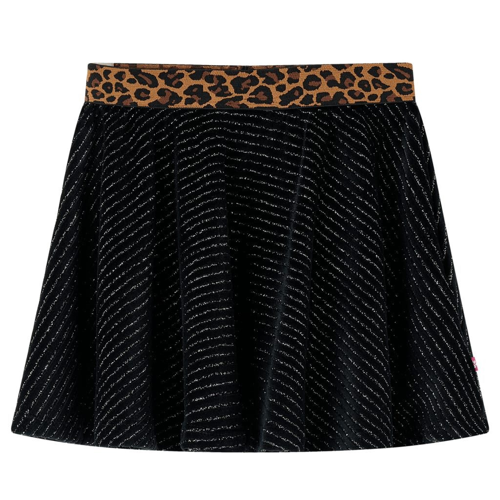 Dieser Kinderrock hat einen elastischen Bund mit Leopardenmuster und einen ausgestellten Saum. Der Kinderrock ist mit silbernen, funkelnden Linien versehen. Der kurze Rock ist aus weichem Material gefertigt, das zu 95 % aus Baumwolle und zu 5 % aus Elastan besteht und daher nicht nur komfortabel, sondern auch auf eine lange Lebensdauer ausgelegt ist.