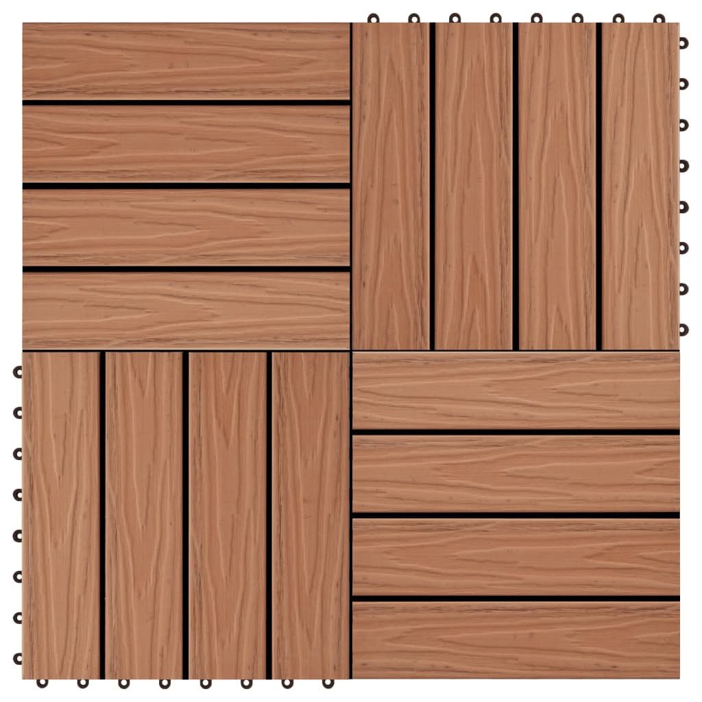 Das tief geprägte Terrassenfliesen-Set besteht aus 11 WPC-Fliesen mit einer Размер von je 30 x 30 cm und deckt eine Gesamtfläche von 1 Quadratmeter ab. Es verleiht deiner Terrasse, deinem Balkon, deinem Badezimmer oder deinem Pool-Bereich einen sauberen Look.