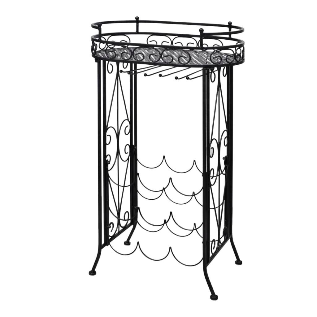 Dieses Flaschenhalter-Standregal wird überall zum Hingucker. Hergestellt aus Schmiedeeisen, ist dieses Weinregal vollständig pulverbeschichtet; dadurch ist es rostfrei und besonders langlebig! Dieses Weinregal kann bis zu 9 Flaschen halten. Die Oberplatte dient als kleiner Serviertisch. Unter der Tischplatte können Sie mehrere Stielgläser zum Aufbewahren einfach aufhängen. Somit wird dieser Flaschen- und Weinglashalter sicherlich eine perfekte Ergänzung neben Ihrem Esstisch. Sein klassischer und eleganter Stil verleiht jedem Raum einen Hauch von Romantik. Es ist außerdem ein großartiges Geschenk für Weinliebhaber, für Freunde und Bekannte. Dieses schicke Weinregal wird bei Ihnen Zuhause einfach toll aussehen!