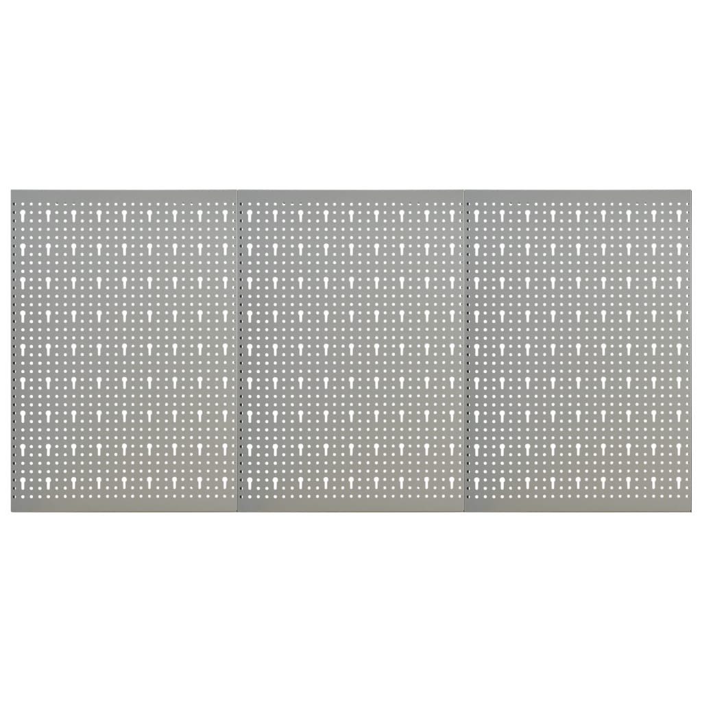 Bewahren Sie Ihre Werkzeuge gut organisiert und leicht zugänglich an dieser Werkzeugwand auf! Die Lochwand-Paneele können in Ihrer Werkstatt, Garage und zu anderen gewerblichen Zwecken zum Einsatz kommen. Diese aus massivem Stahl gefertigte Werkzeugwand kann das Gewicht verschiedener Werkzeuge wie Bohrer, Zangen, Schraubenzieher und Schraubenschlüssel tragen und gewährleistet daher eine vielseitige Verwendung. Die Lochwand ist perforiert, um Werkzeuge einfach und sicher anzubringen. Die 3 Werkzeugwand-Stecktafeln können für zusätzliche Robustheit miteinander befestigt werden. Dank der praktischen Breite von 120 cm im zusammengebauten Zustand ist es eine ideale Ergänzung für Werkbänke und Werkstattschränke.