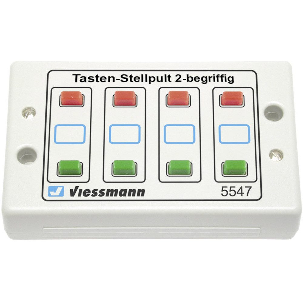 Mit Momentkontakt für 4 Weichen bzw. 2-begriffige Formsignale oder bis zu 8 Entkupplungsgleisen. Im analogen Einsatz steuert das Stellpult auch die Steuermodule für Lichtsignale, wenn daran 2-begriffige Signale angeschlossen sind. Mehrere Pulte können aneinandergereiht werden.