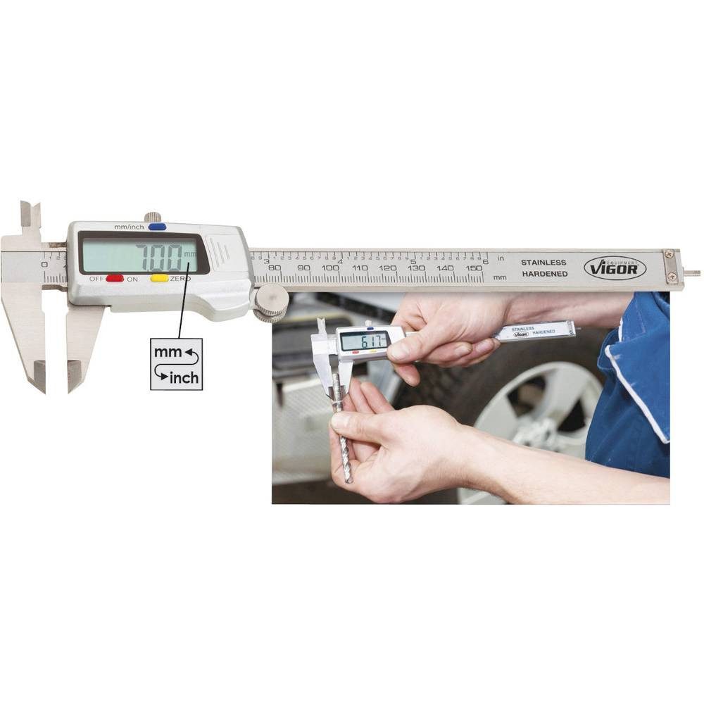 Eigenschaften | Material: rostfreier Stahl · Messbereich (max.): 150 mm · Produktabmessung, Длина: 235 mm · Stromversorgung (Details): 1,5 V (LR44) Knopfzelle · kalibriert: Werksstandard (ohne Zertifikat) |