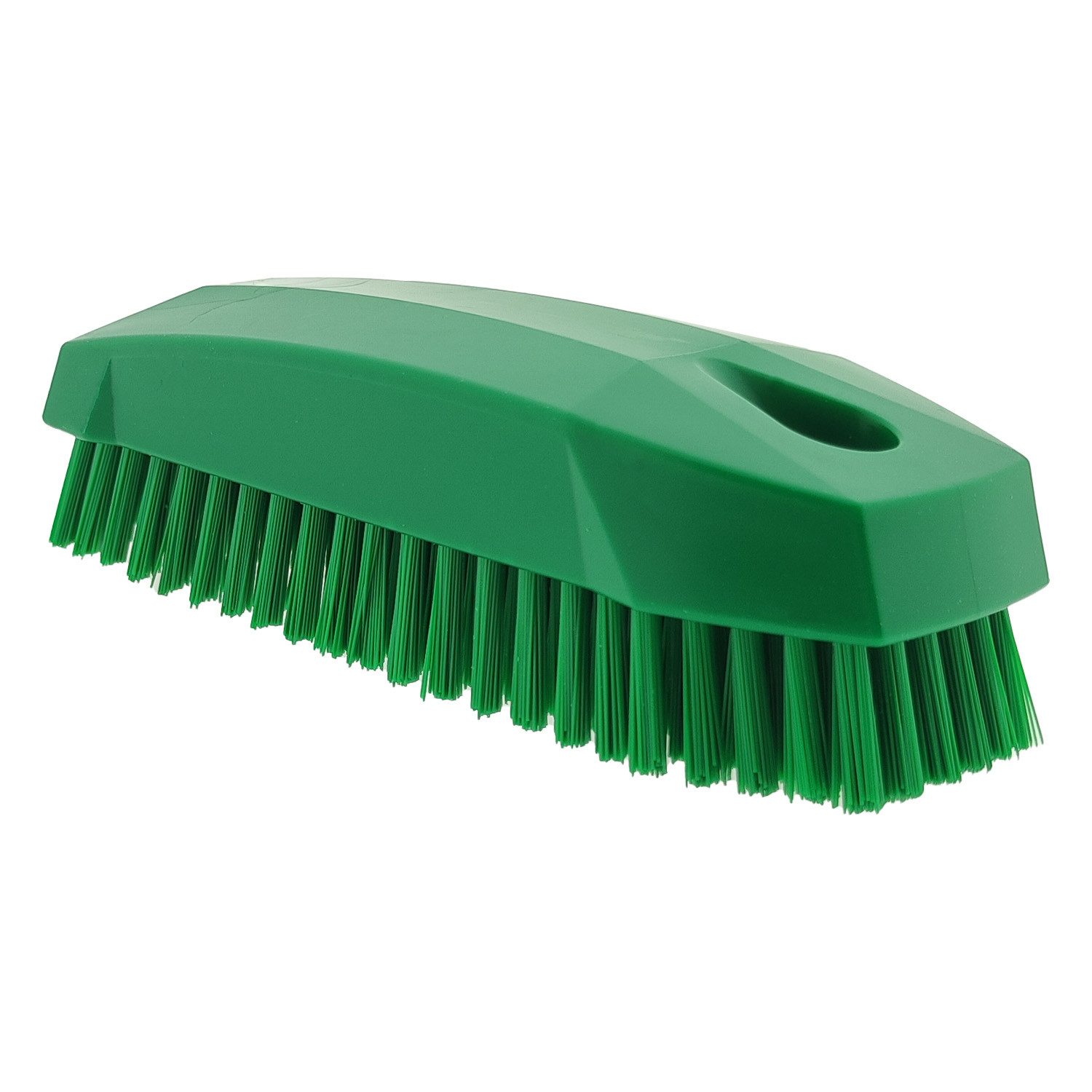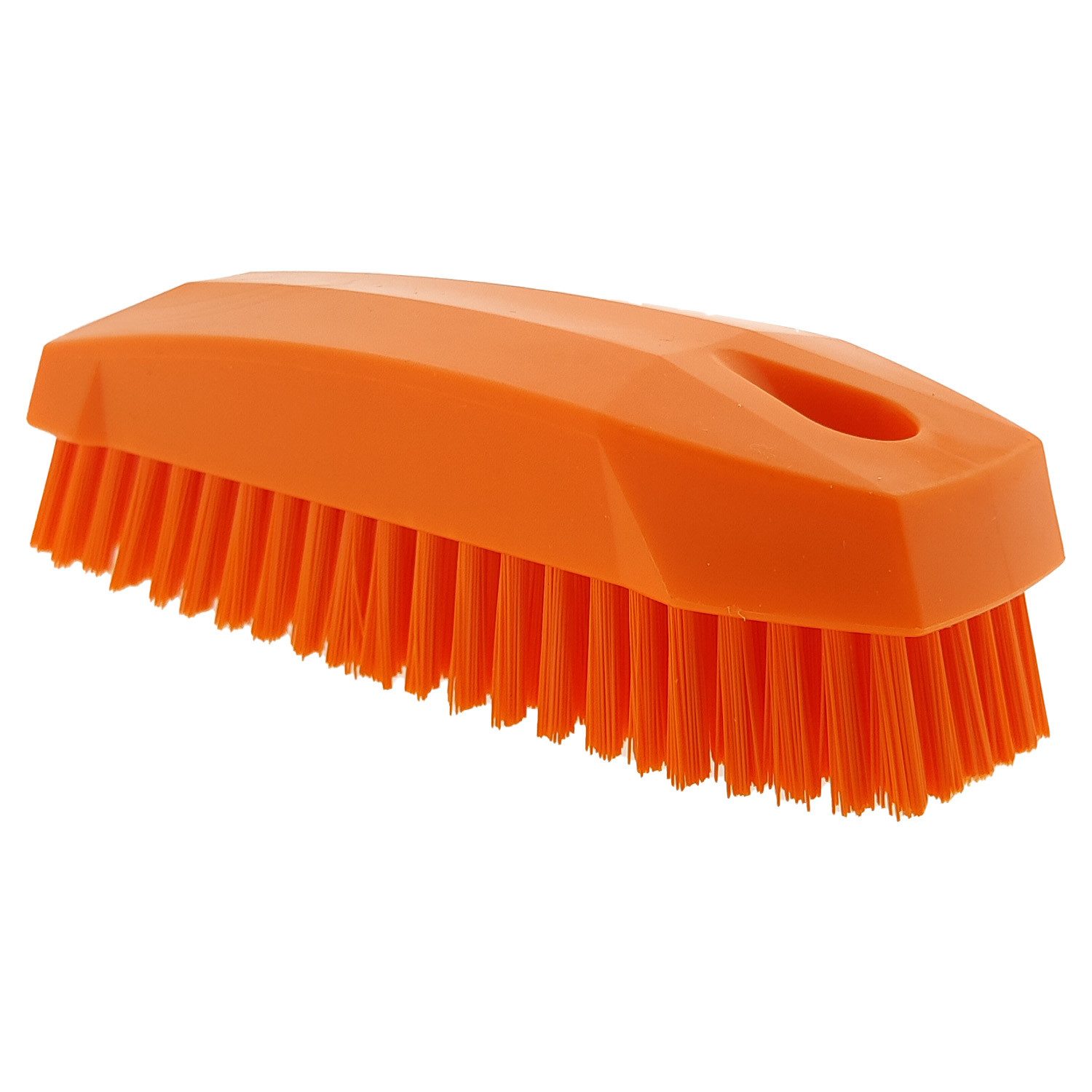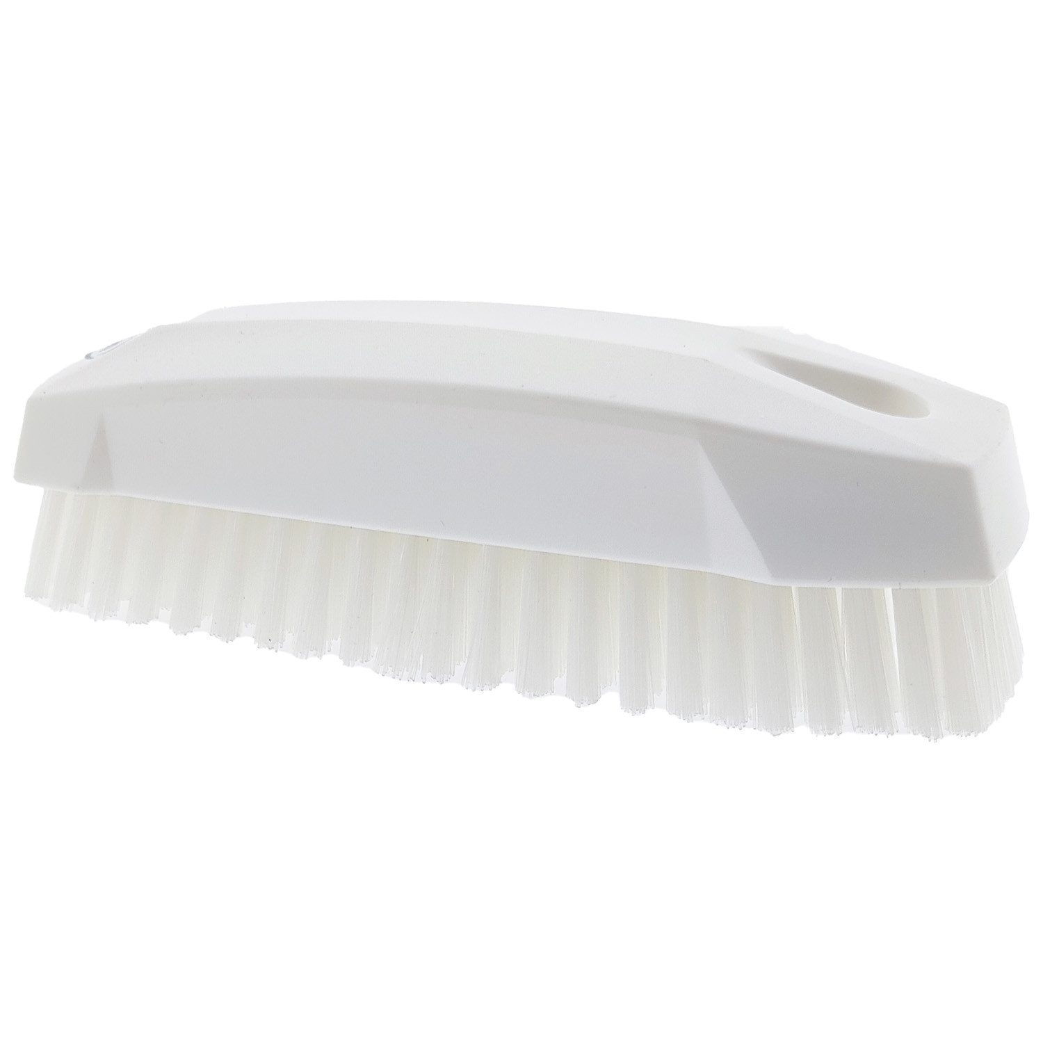 Hygienisches Design mit abgewinkelter und abgerundeter Oberfläche ermöglicht optimale Reinigung; steife, abgewinkelte Borsten gelangen effektiv in Zwischenräume.