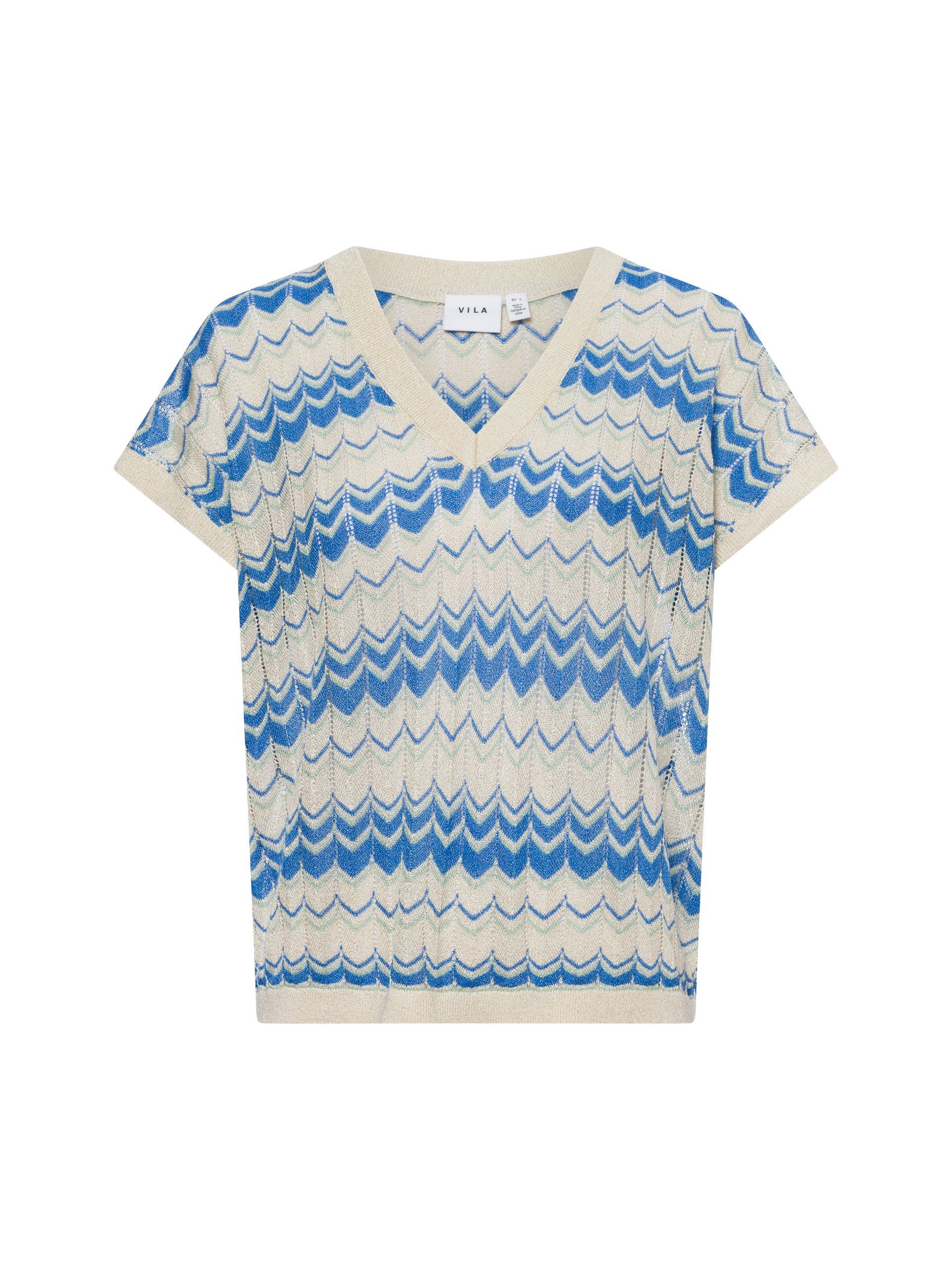 Der VILA VIEmber Pullunder aus Lochstrick mit Metallic-Effekt verleiht jedem Look einen modernen, glänzenden Akzent und sorgt für einen stylischen Auftritt.
