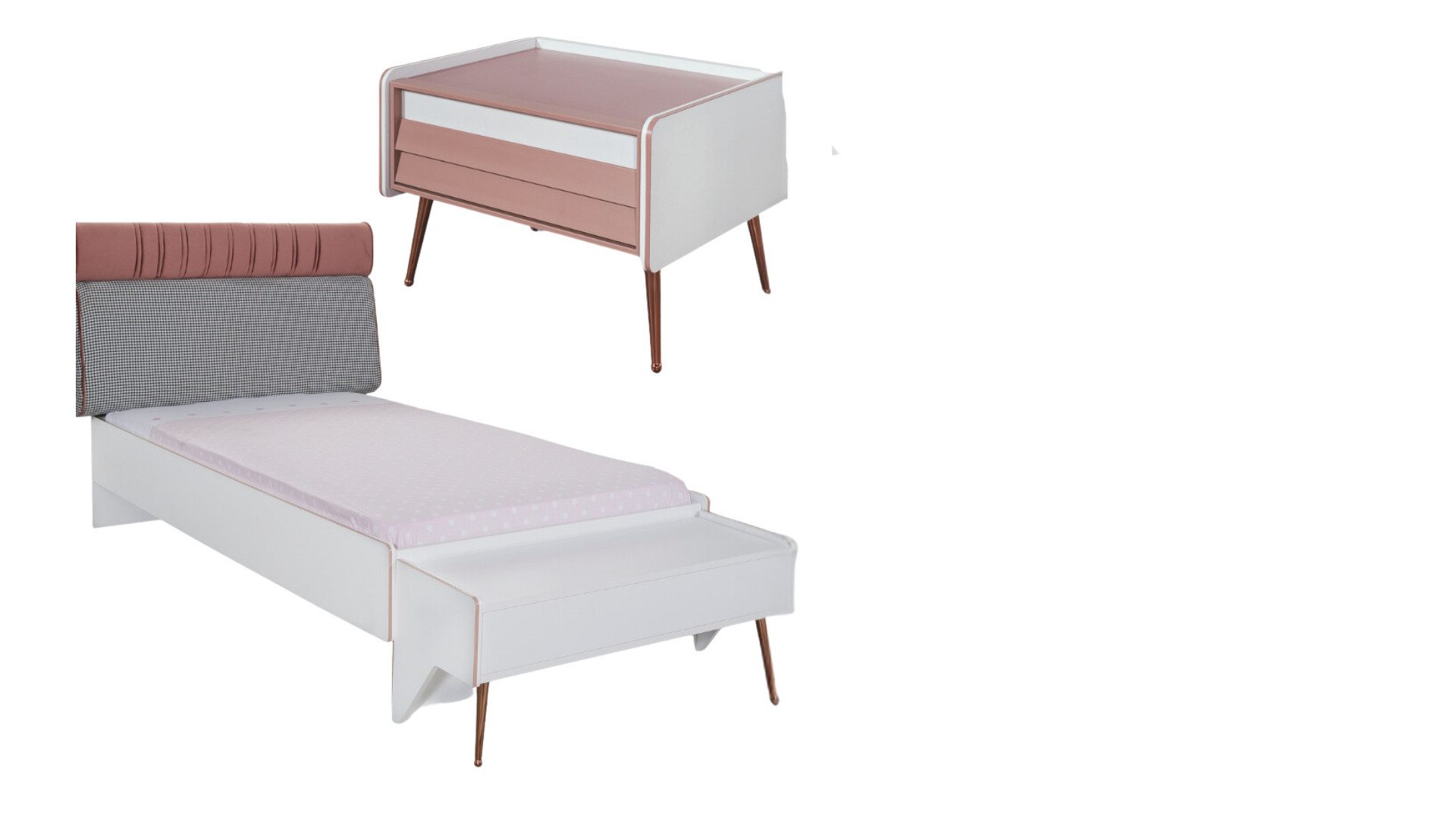 S Set besteht aus Bett-Kleiderschrank-Nachttisch