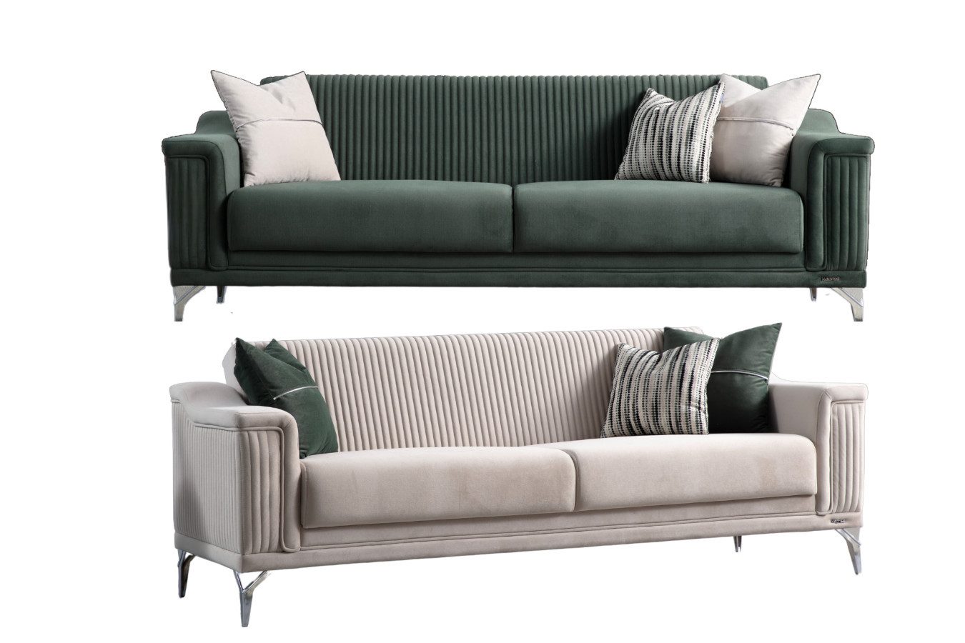 Entdecken Sie das Elyss Sofa Set und bringen Sie modernen Stil und Komfort in Ihr Zuhause! Mit seiner beeindruckenden Kombination aus Design, Funktionalität und Schlaffunktion wird dieses Sofa-Set garantiert zum Mittelpunkt Ihres Wohnzimmers. Egal ob Sie es zum Entspannen oder für gesellige Abende nutzen – das Elyss Sofa Set bietet Ihnen immer den höchsten Komfort und eine stilvolle Optik. Machen Sie Ihr Wohnzimmer zu einem Ort des Wohlfühlens und genießen Sie die Vielseitigkeit und Eleganz dieses einzigartigen Möbelstücks.
