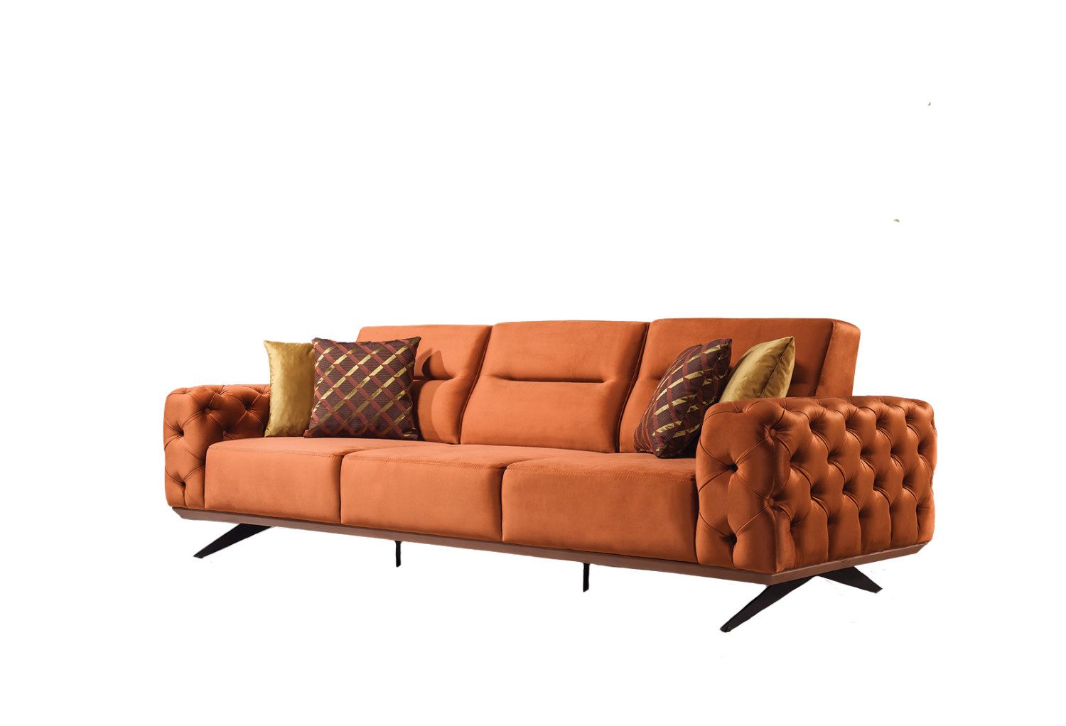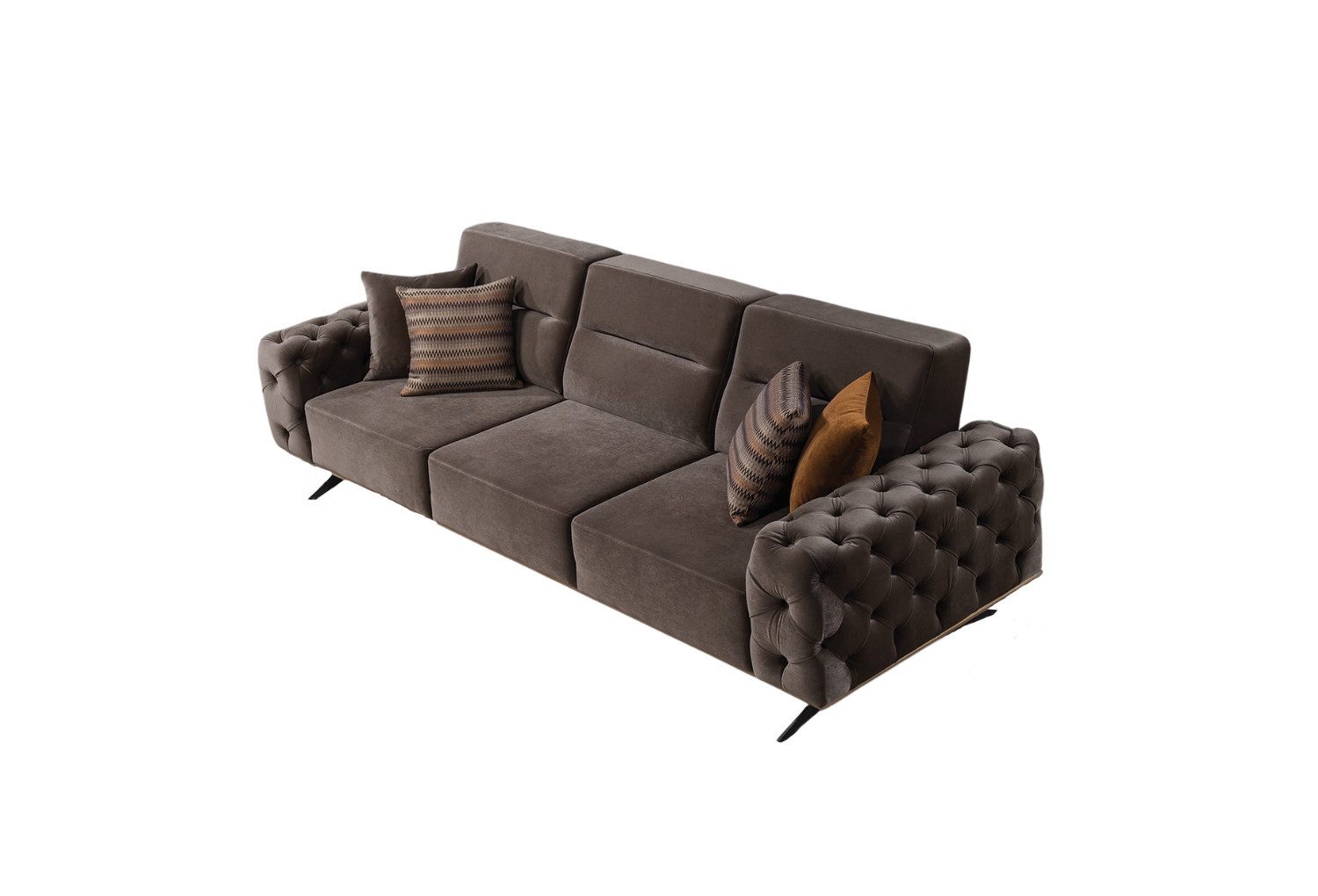 Das Designgestell des Sofas verleiht ihm eine elegante und moderne Optik, die in jedem Wohnzimmer zum Blickfang wird. Die hochwertige Heftsteppung an den Armlehnen unterstreicht das edle Erscheinungsbild und fügt dem Sofa eine luxuriöse Note hinzu.