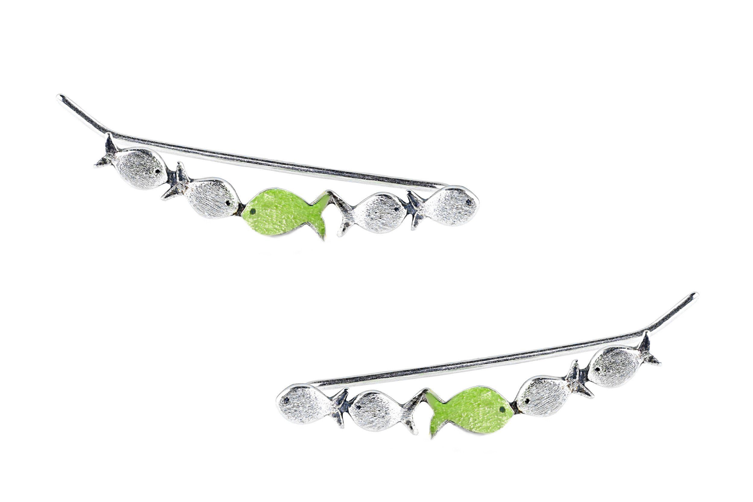 Manchmal, egal was passiert, muss man gegen den Strom schwimmen.... genau wie unser hellgrün emaillierter kleiner Freund hier :) Die Ohrklemmen sind aus Sterlingsilber (gestempelt) und unser tapferer kleiner Held wird mit Emaille hervorgehoben. Ohrklemmen funktionieren wie Haarnadeln: Stecken Sie den Haken wie üblich durch Ihr Ohrloch. Ziehen Sie dann den Haken auf der Rückseite Ihres Ohres fest, indem Sie ihn zusammendrücken. Das war's :-). Geschütztes eingetragenes Design. Unser exklusiv gestalteter Schmuck, handgefertigt in unserer kleinen Berliner Werkstatt, kommt immer in einer speziell gebrandeten, plastikfreien Verpackung. Mit Ihrem Kauf unterstützen Sie ein unabhängiges kleines Familienunternehmen. Mit der Verwendung von recycletem Silber, plastikfreier Verpackung sowie CO²-Kompensation schonen wir Umwelt und Klima. Zur eindeutigen Identifikation unseres Produkts dient die jeweils angegebene SKU-Artikelnummer sowie der Name und die Beschreibung des Schmuckstücks in diesem Angebot. Hersteller und Verkäufer des Schmuckstücks ist die Villa Sorgenfrei Schmuckmanufaktur Gmbh, Adresse und Kontaktinfo: Freienwalder Str. 17, 13055 Berlin, Tel. 030 3512 8209, Email villa@villamail.de; Verantwortlicher: Geschäftsführender Gesellschafter Dirk Dotzert.