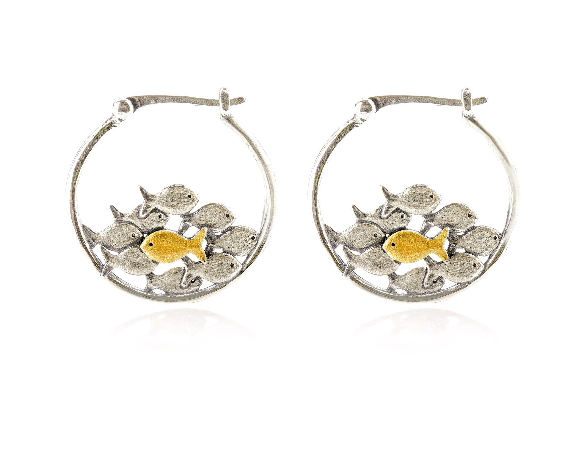 Manchmal muss man eben gegen den Strom schwimmen ... so wie unsere goldemaillierten kleinen Freunde hier :-). Unser neuestes Schmuckstück aus unserer GEGEN DEN STROM-Kollektion sind diese großen Creolen: Sie sind doppelseitig, damit Sie das Motiv immer sehen können: von vorne, von der Seite und von hinten. Solides Handwerk, mit einem guten Gewicht, soliden Verschlüssen und einer Emaillebeschichtung über dem goldenen Fisch. Kurzum: Diese Ohrringe halten ewig. Das Angebot hier bezieht sich auf ein Paar Creolen wie oben beschrieben. Geschütztes eingetragenes Design. Unser exklusiver eigendesignter Schmuck, immer endkonfektioniert in unserem kleinen Betrieb in Berlin, kommt sämtlich in plastikloser, gebrandeter Verpackung. Sie unterstützen mit Ihrem Kauf ein unabhängiges Familienunternehmen.