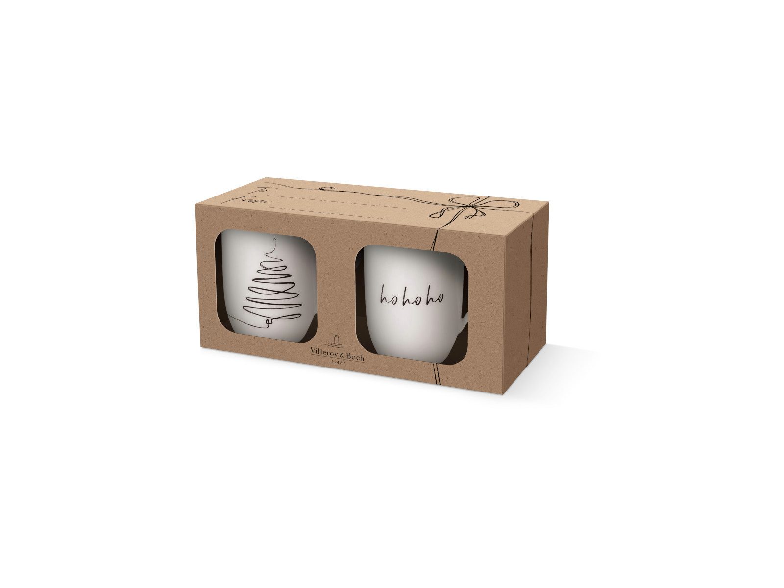 Das Statement Henkelbecher Baum XMAS Set besteht aus zwei stilvollen Tassen aus Premium Porzellan, die perfekt für die festliche Jahreszeit geeignet sind. Mit einem Fassungsvermögen von 0,29 Litern und den Maßen 11,5x8x10,4 cm sind diese Tassen sowohl praktisch als auch dekorativ. Hergestellt aus hochwertigem Porzellan, bieten sie eine elegante Optik und Haptik. Die Tassen sind sowohl spülmaschinenfest als auch mikrowellensicher, was sie pflegeleicht und alltagstauglich macht. Die beiden Tassen sind in klassischem Weiß gehalten. Auf der ersten Tasse steht in stilvollem Schwarz "ho ho ho", ein klassischer Weihnachtsgruß, der für festliche Stimmung sorgt. Die zweite Tasse zeigt einen schwarzen Tannenbaum, ein minimalistisches, aber dennoch festliches Motiv, das die Weihnachtszeit perfekt einfängt. Dieses Tassen-Set ist nicht nur ein praktisches Accessoire für Ihre Küche, sondern auch ein wunderbares Geschenk für Freunde und Familie. Die Kombination aus hochwertigem Material und festlichem Design macht diese Tassen zu einem Must-Have für jede Weihnachtszeit.