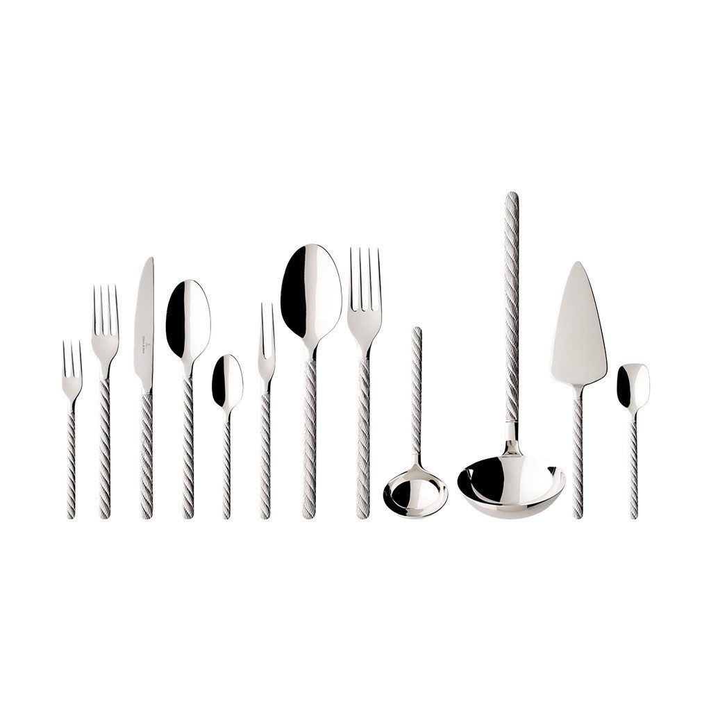Das passende Besteck zur Geschirr-Kollektion Montauk mit markantem Seil-Relief am Heft liegt besonders gut in der Hand. Ob beim gemütlichen Essen zu zweit oder beim entspannten Abend im Freundeskreis: Montauk ist das perfekte Besteck für jeden Tag, schlicht und dennoch effektvoll. Bereits seit 1748 steht Villeroy & Boch für elegantes Geschirr-Design erster Güte. Das Tafelbesteck für zwölf Personen mit passendem Servierbesteck eignet sich für jeden Tag oder zu besonders festlichen Anlässen. Holen Sie sich das passende Besteck zum Porzellan-Service von Villeroy & Boch. Natürlich geeignet für die Spülmaschine, wird in edler Besteck-Kassette geliefert.