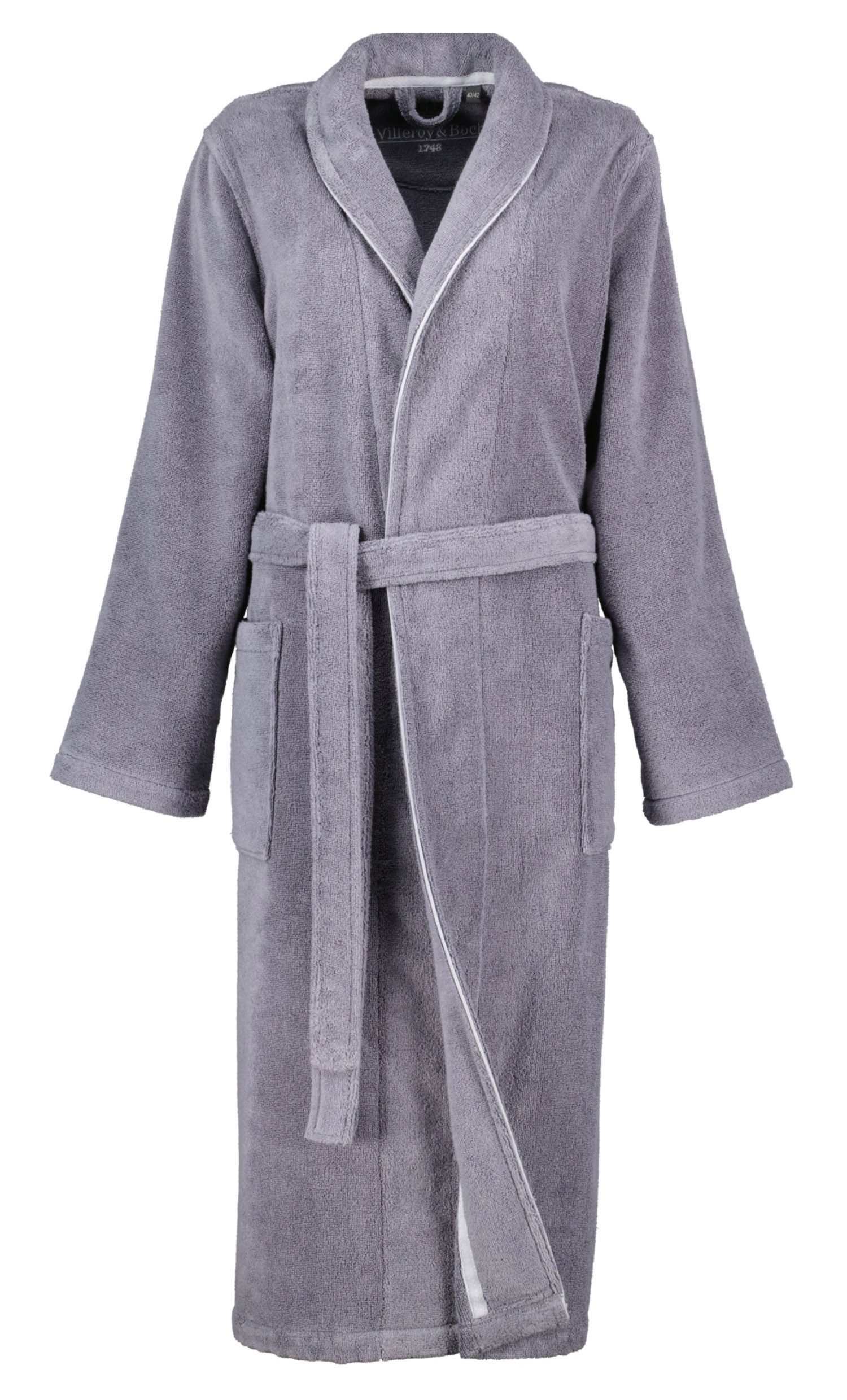Dieser elegante Villeroy & Boch Damen-Bademantel besticht durch seine Kombination aus klassischem Stil und hochwertigen Materialien. Hergestellt aus 100 % reiner Baumwolle, bietet er höchsten Tragekomfort und eignet sich perfekt für entspannte Stunden zu Hause oder nach dem Duschen. Die Длина von 120 cm reicht bis unter die Knie und sorgt für eine schmeichelhafte Silhouette, die sowohl gemütlich als auch stilvoll wirkt. Der Bademantel ist mit einem klassischen Schalkragen ausgestattet, der zusätzlich Wärme spendet und dabei zeitlos elegant aussieht. Am Kragen befindet sich eine feine Biesen-Verzierung, die dem Bademantel eine edle Note verleiht und das Design dezent aufwertet. Diese feinen Details zeigen die hochwertige Verarbeitung und machen den Bademantel zu einem besonderen Kleidungsstück. Durch das saugfähige Baumwollmaterial ist der Mantel besonders hautfreundlich, atmungsaktiv und leicht zu pflegen. Er ist die ideale Wahl für alle, die Wert auf Komfort und Stil legen und gleichzeitig ein langlebiges Produkt suchen.