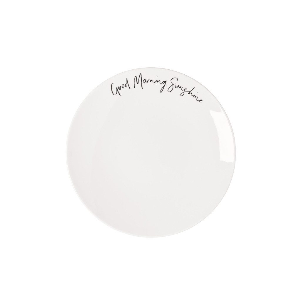 LIEFERUMFANG: 1 x Statement Frühstücksteller Good Morning Sunshine 21 x 21 x 2,5 cm, Material: Premium-Porzellan, Farbe: Weiß
