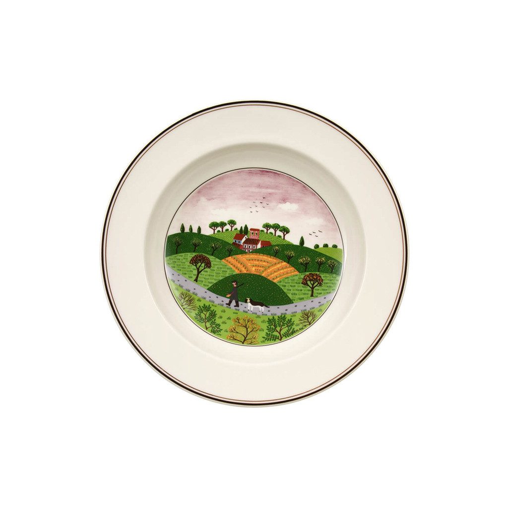 Verspielt wirkende Dekorationen auf klassisch geformtem, rein weißem Porzellan machen die Kollektion Design Naif von Villeroy & Boch zu einem attraktiven Blickfang. In diesem charmanten Teller angerichtet werden alle Suppen und Eintöpfe zum stilvollen Hochgenuss – von der leichten Gemüsebrühe bis hin zum deftigen Gulasch. Verwöhnen Sie Ihre Gäste mit hausgemachten Suppen und besonders hochwertigem Geschirr.