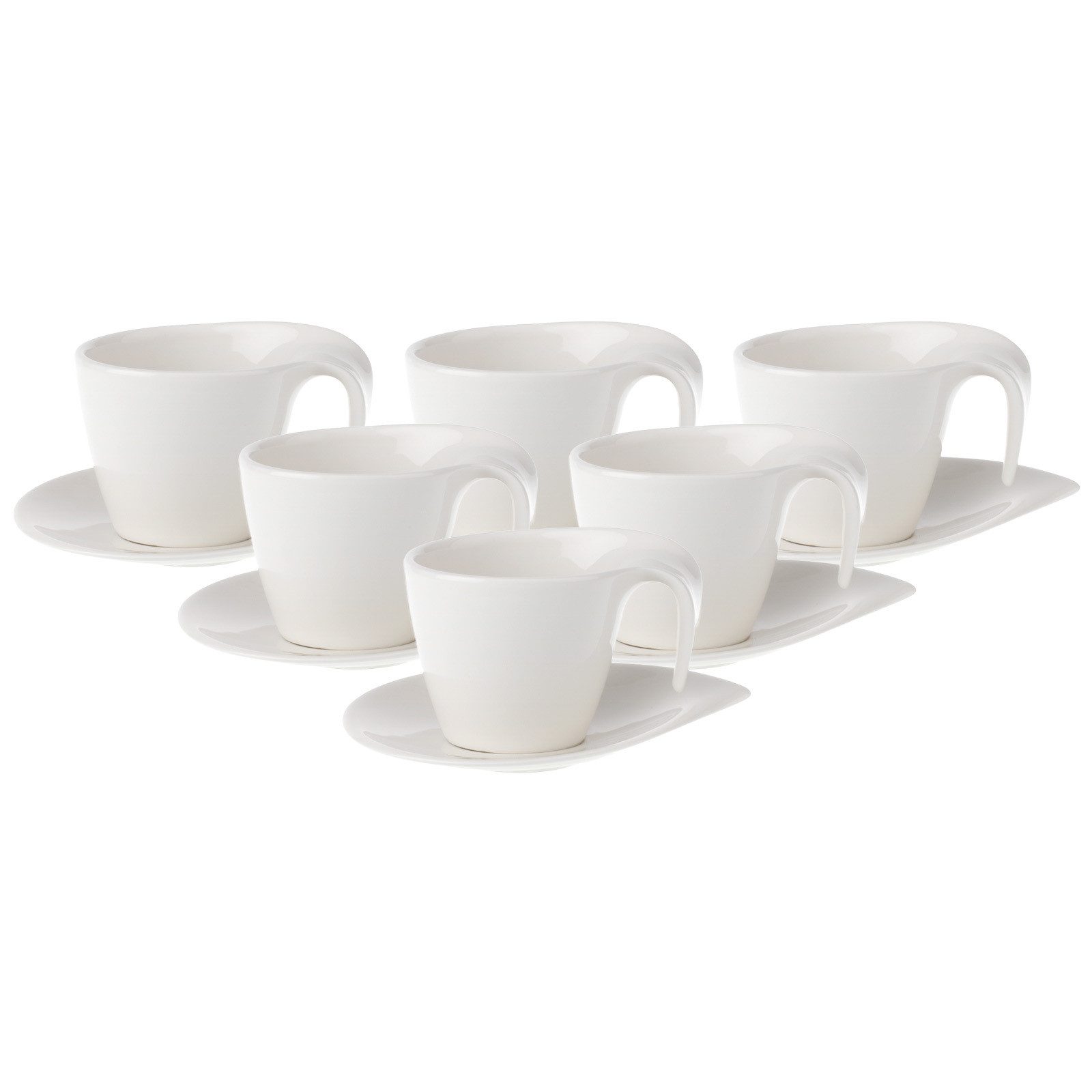 Lieferumfang: 6x Villeroy & Boch Flow Frühstückstasse mit Untertasse, Füllmenge: 250 ml, Maße (Kombination): 21,5 x 18,5 x 12,4 cm, Material: Premium Porzellan, Farbe: Weiß