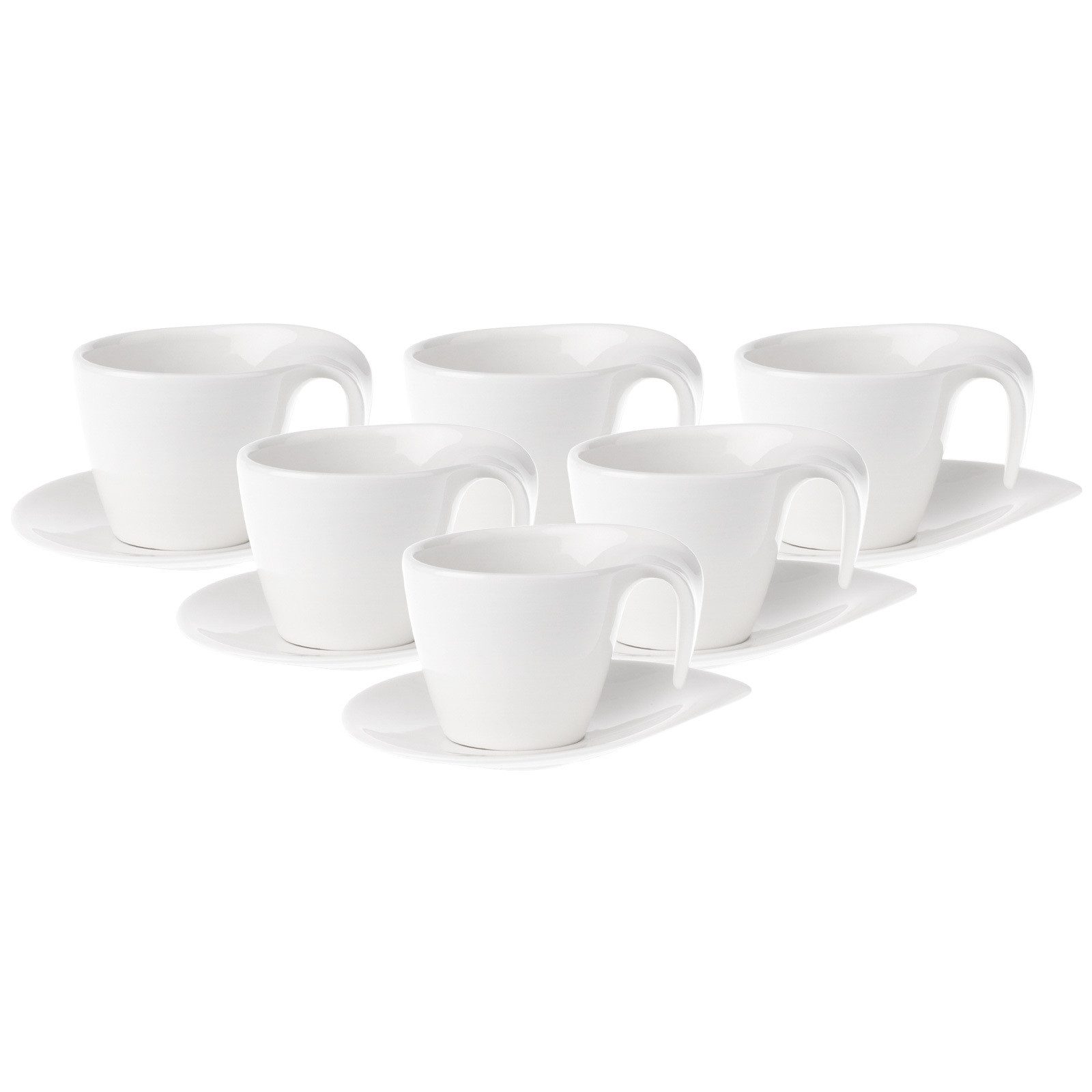 Lieferumfang: 6x Villeroy & Boch Flow Kaffeetasse mit Untertasse, Füllmenge: 200 ml, Maße (Kombination): 17,7 x 15 x 10,8 cm, Material: Premium Porzellan, Farbe: Weiß