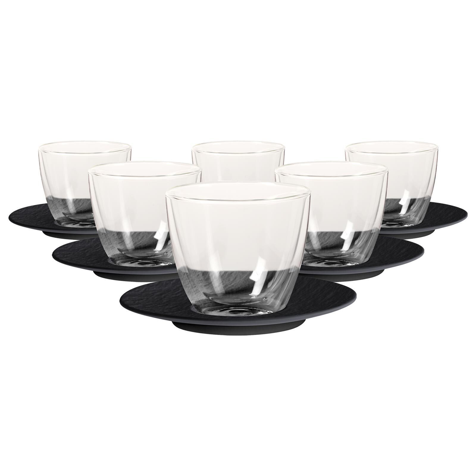 Perfekte Kombination – Die stilvollen Untertassen ergänzen das Kaffeeglas ideal und passen perfekt zur Manufacture Rock Kollektion.