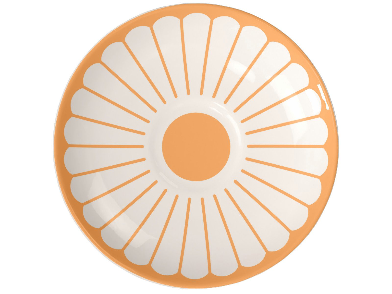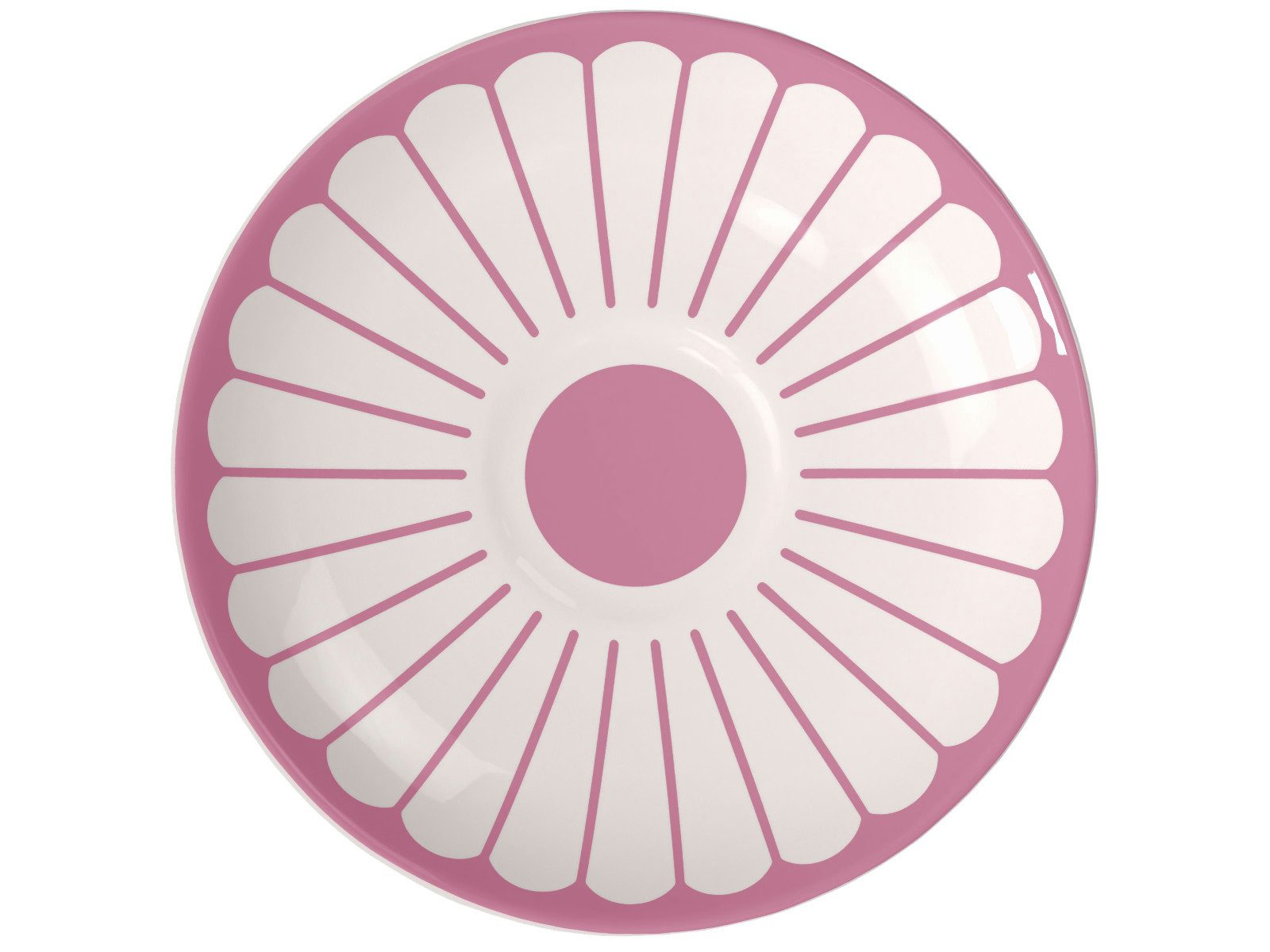 Das Dekor der Fleur Cassis Kollektion zeichnet sich durch stilisierte florale Muster in kräftigen Farben aus, inspiriert von der gleichnamigen Designbewegung der 1980er Jahre. Diese Gestaltung verleiht der Untertasse einen einzigartigen Retro-Charme und macht sie zu einem Blickfang auf jeder Tafel.