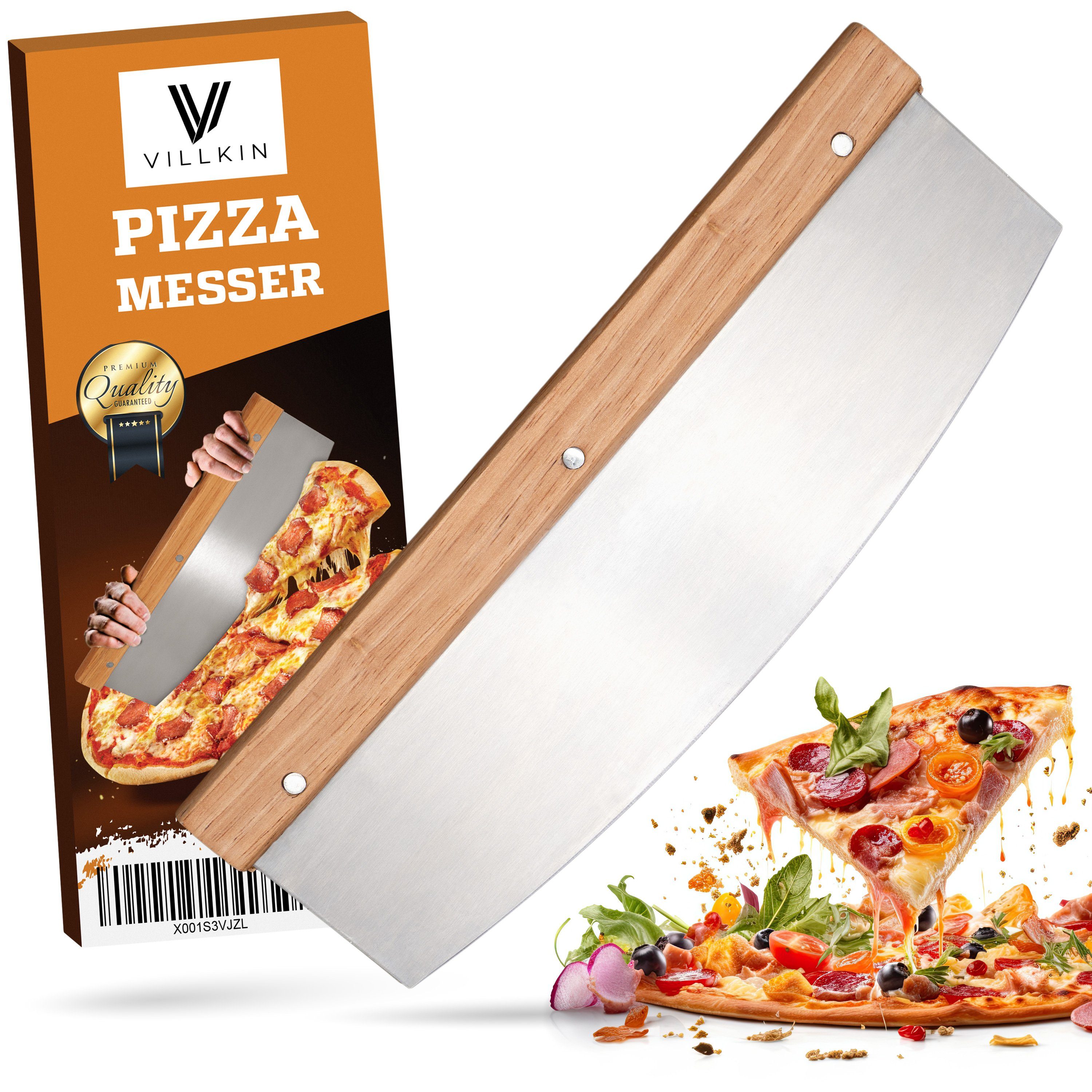 Villkin Pizzaschneider – Das Must-Have für alle Pizza-Liebhaber! Perfekt geschnittene Pizzastücke in Sekunden! Der Villkin Pizzaschneider mit 32 cm Edelstahlklinge ermöglicht müheloses Schneiden ohne Verrutschen des Belags. Durch den ergonomischen Holzgriff liegt das Wiegemesser optimal in der Hand und sorgt für höchsten Komfort. Deine Vorteile auf einen Blick: Präzises Schneiden – Scharfe Edelstahlklinge für saubere & gleichmäßige Pizzastücke. Ergonomischer Holzgriff – Perfekter Halt für müheloses & sicheres Arbeiten. Robust & langlebig – 1,2 mm dicke Edelstahlklinge für höchste Stabilität & Langlebigkeit. Multifunktional – Perfekt für Pizza, Kräuter, Flammkuchen & Kuchen. Leichte Reinigung – Einfach unter fließendem Wasser abspülen & sicher verstauen mit Klingenschutz. Der perfekte Küchenhelfer für alle Pizza-Fans! Ob für den gemütlichen Pizzaabend oder das schnelle Zerteilen von Kräutern – das Villkin Wiegemesser ist der ideale Begleiter in jeder Küche.