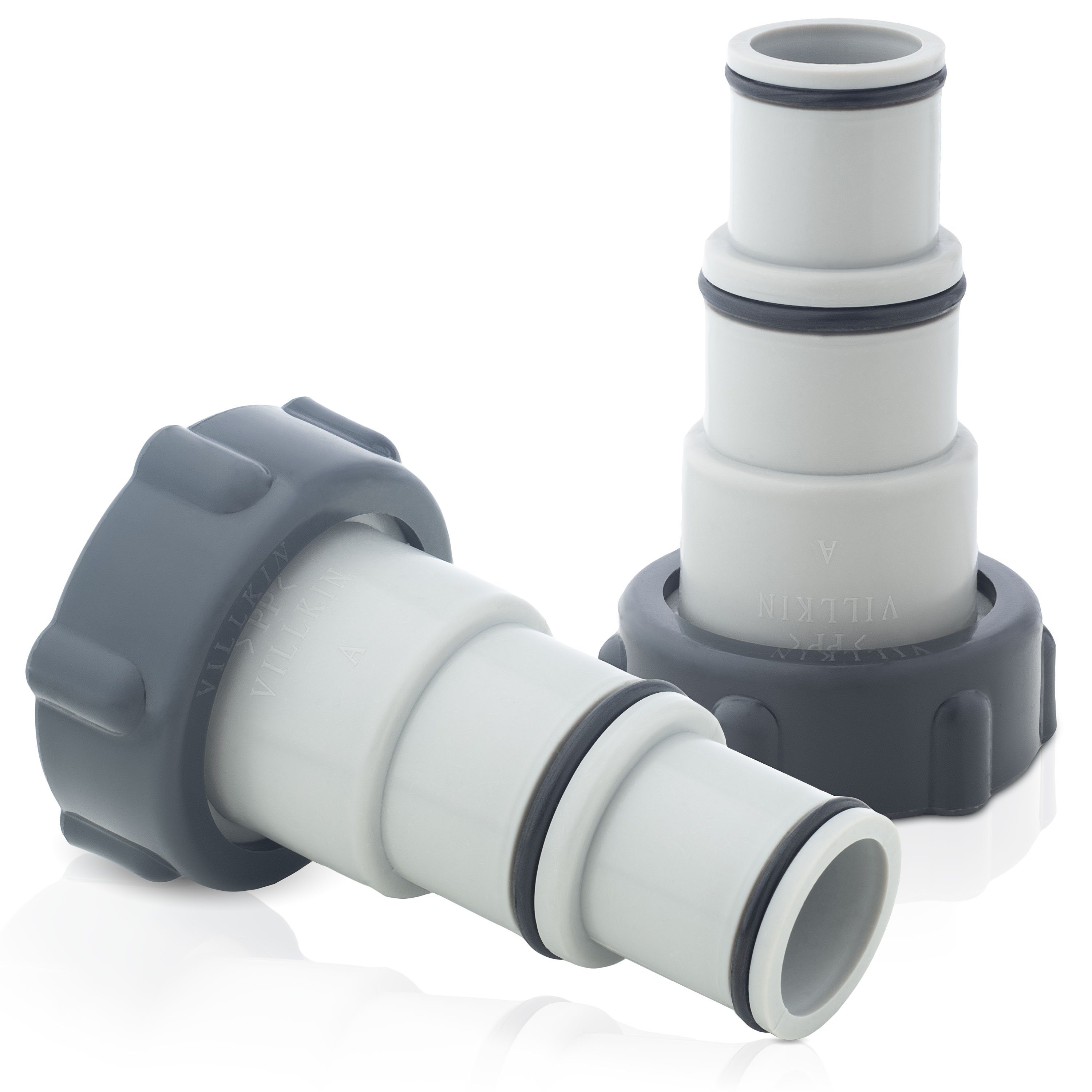 PERFEKTE PASSFORM - Universell einsetzbar: Für Schläuche mit 32mm oder 38mm Durchmesser. Gewindeanschluss passend für Intex Adapter mit 2 Zoll Innengewinde.