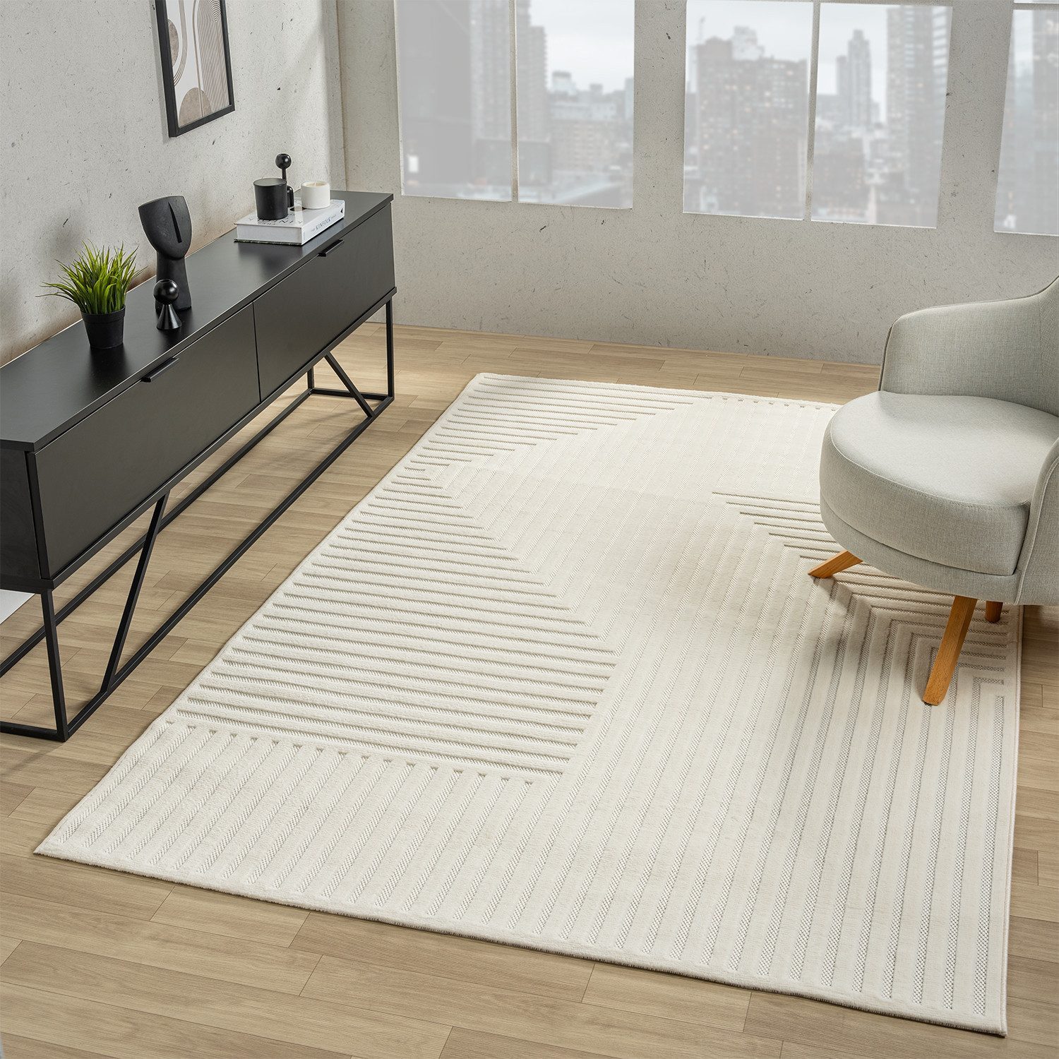 Erleben Sie luxuriöses Wohnen mit unserem exquisiten Vimoda kurzflor Teppich, der mit seinen schönen Mustern Wellen ein Meisterwerk an Weichheit und Eleganz ist. Dieser Teppich mit seiner einzigartigen Textur und dem Hoch- und Tief-Effekt 3D lädt dazu ein, Wohnzimmer in eine modern wirkende Welt zu verwandeln, die Ihre Sinne umschmeichelt.