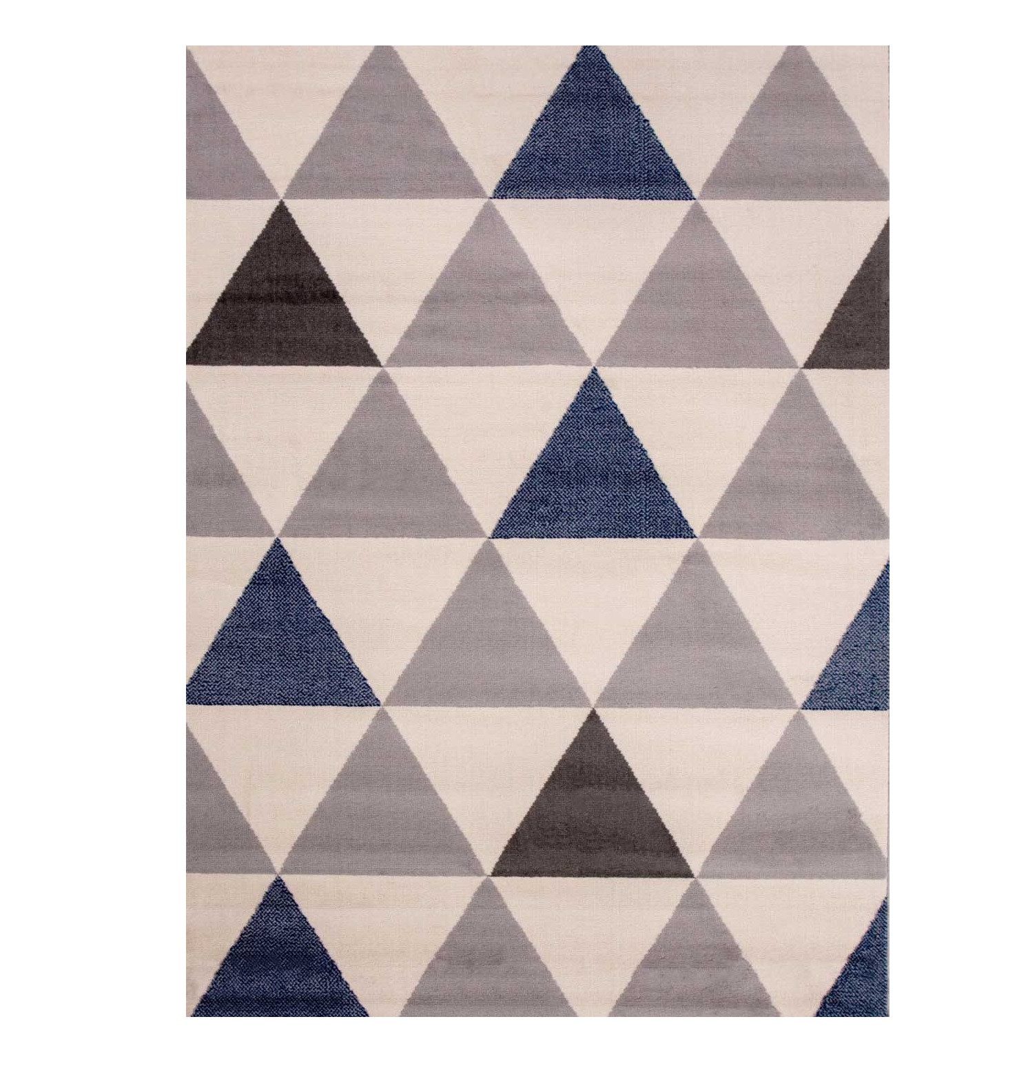 Ein moderner Teppich mit kurzem Flor und einem angesagten Muster Dreieckmuster perfekt für Ihr Zuhause. Der Teppich ist von hervorragender Qualität und bringt ein angenehmes Flair in jedes zu Hause. Die Kombination der sanften, aber ausdrucksstarken Farben wird zum echten Blickfang. Die pastellblauen Dreiecke setzen farbenfrohe Akzente und geben somit den letzten Schliff. Lassen Sie sich von dem Charme selbst überzeugen. Die weiche Teppich-Kunststofffaser wurde durch das Heatset Verfahren veredelt und ist somit äußerst resistent gegenüber Verschmutzungen. Verschiedene Garnfarben bieten visuell eine interessante Melierung für eine dynamische Oberflächenstruktur. Die kurze Florhöhe von ca. 5 mm sorgt für eine pflegeleichte Handhabung. Der Teppich ist an allen Seiten mit einem stabilen Garn in passender Farbe für einen sauberen Abschluss gekettelt. STANDARD 100 (13.HTR.33637 Hohenstein HTTI)
