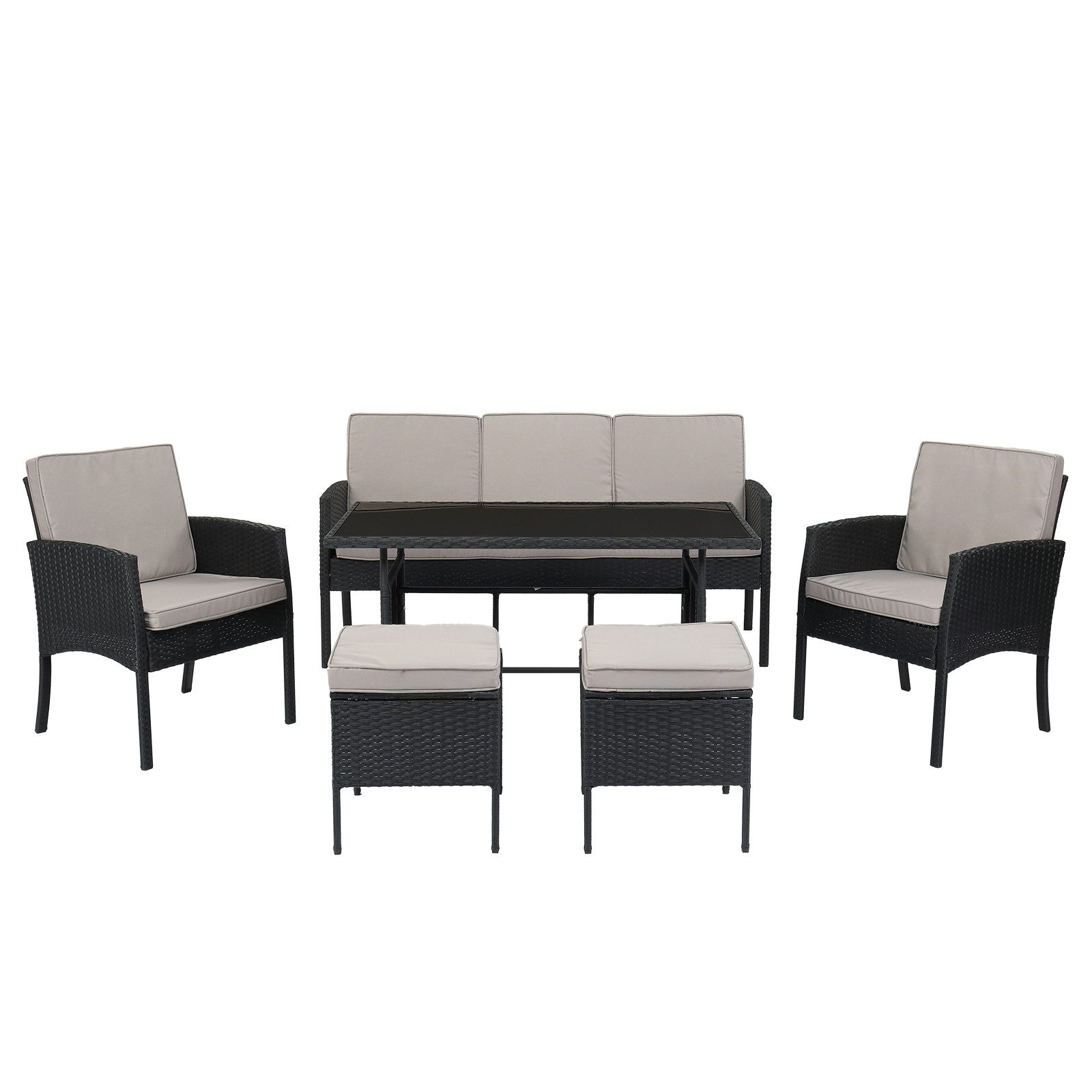 Gartenlounge-Set Gartenmöbel Set 6-teilig, 1 Dreisitzer Sofa+2 Sessel+1 Tisch+2 Hocker