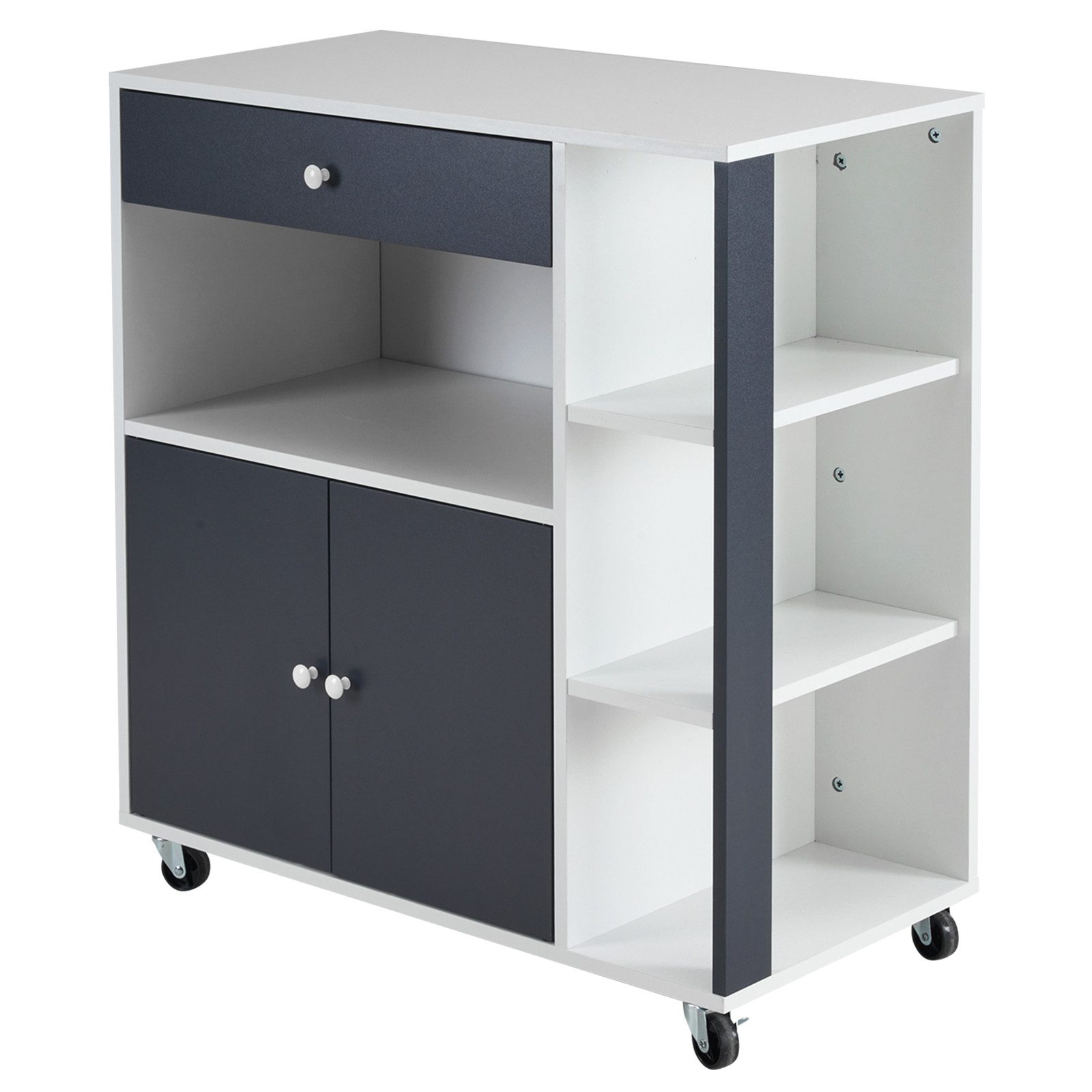 Dieser elegante Kücheninsel lässt sich mühelos bewegen wohin Sie möchten. Mit zwei feststellbaren Rollen bleibt er sicher an Ort und Stelle, wenn Sie ihn positioniert haben.