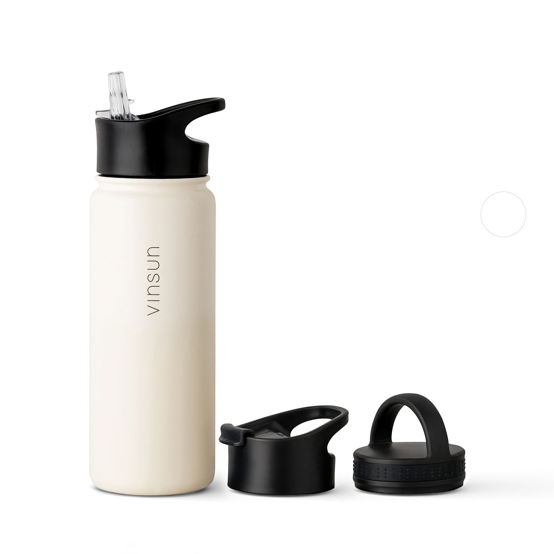 Lieferumfang | 1x Vinsun Trinkflasche 500ml, 1x Deckel mit Strohhalm, 1x Deckel mit Trinköffnung, 1x Klassischer Schraubverschluss Deckel |