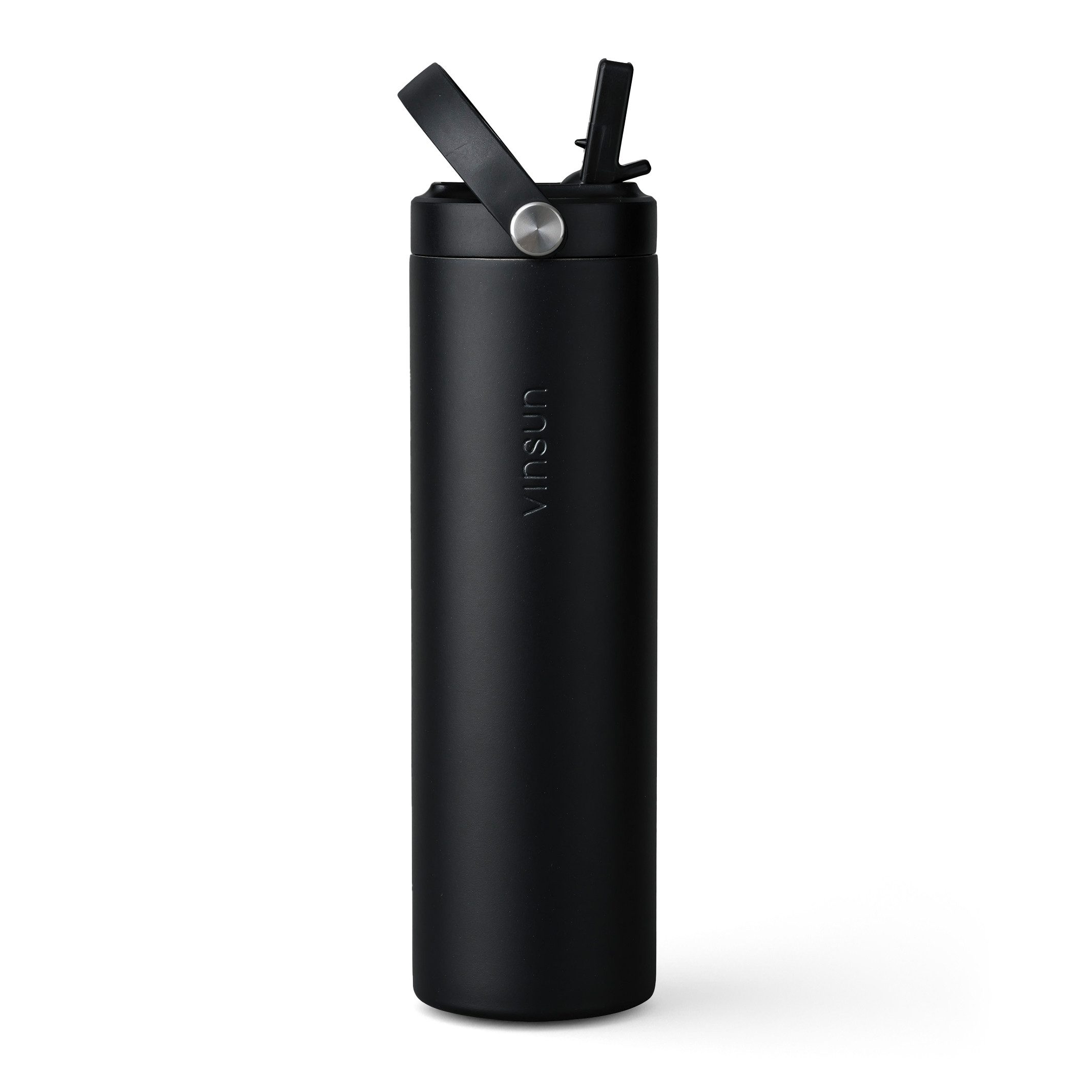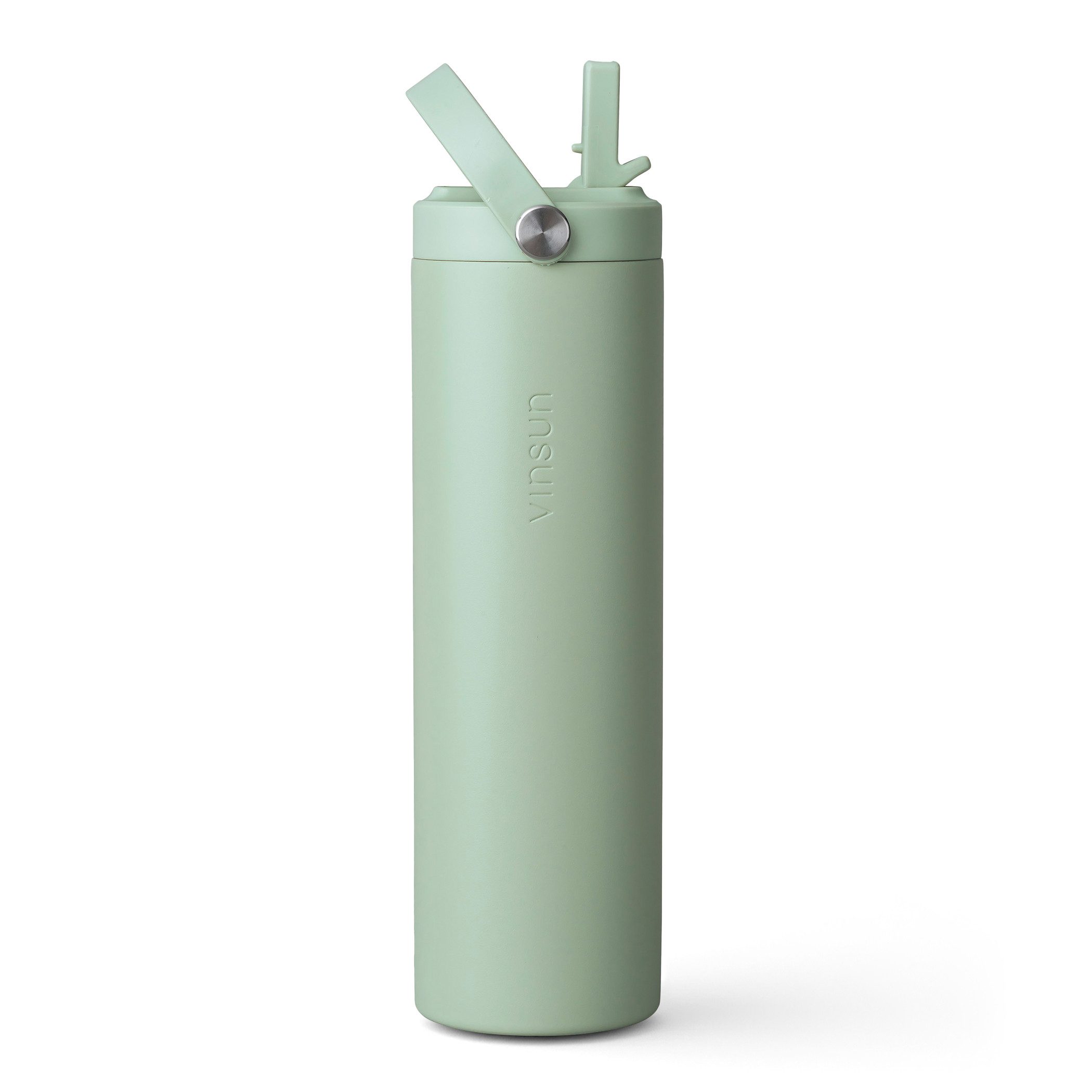 Die Thermoflasche wird mit einem klappbaren Strohhalmdeckel geliefert, der gerne bei holprigen Aktivitäten verwendet wird. Um unterwegs den optimalen Komfort zu gewährleisten, verfügt die Isolierflasche zudem über einen beweglichen Tragegriff, der im Deckel integriert ist, sowie einen rutschfesten Gummiring am Boden, sodass die Flasche immer einen sicheren Stand hat.