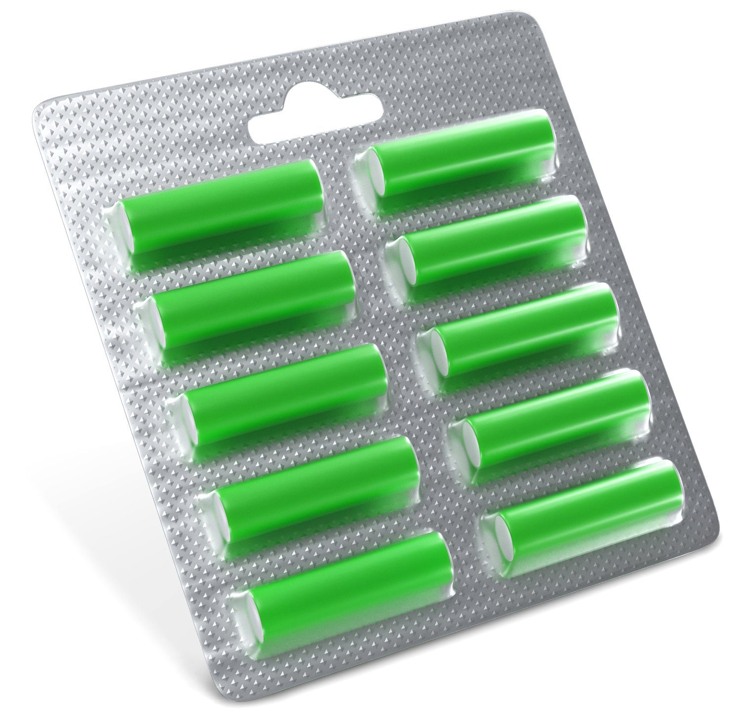 Grüne Duftstäbchen im Blister für Staubsauger Vorwerk Kobold