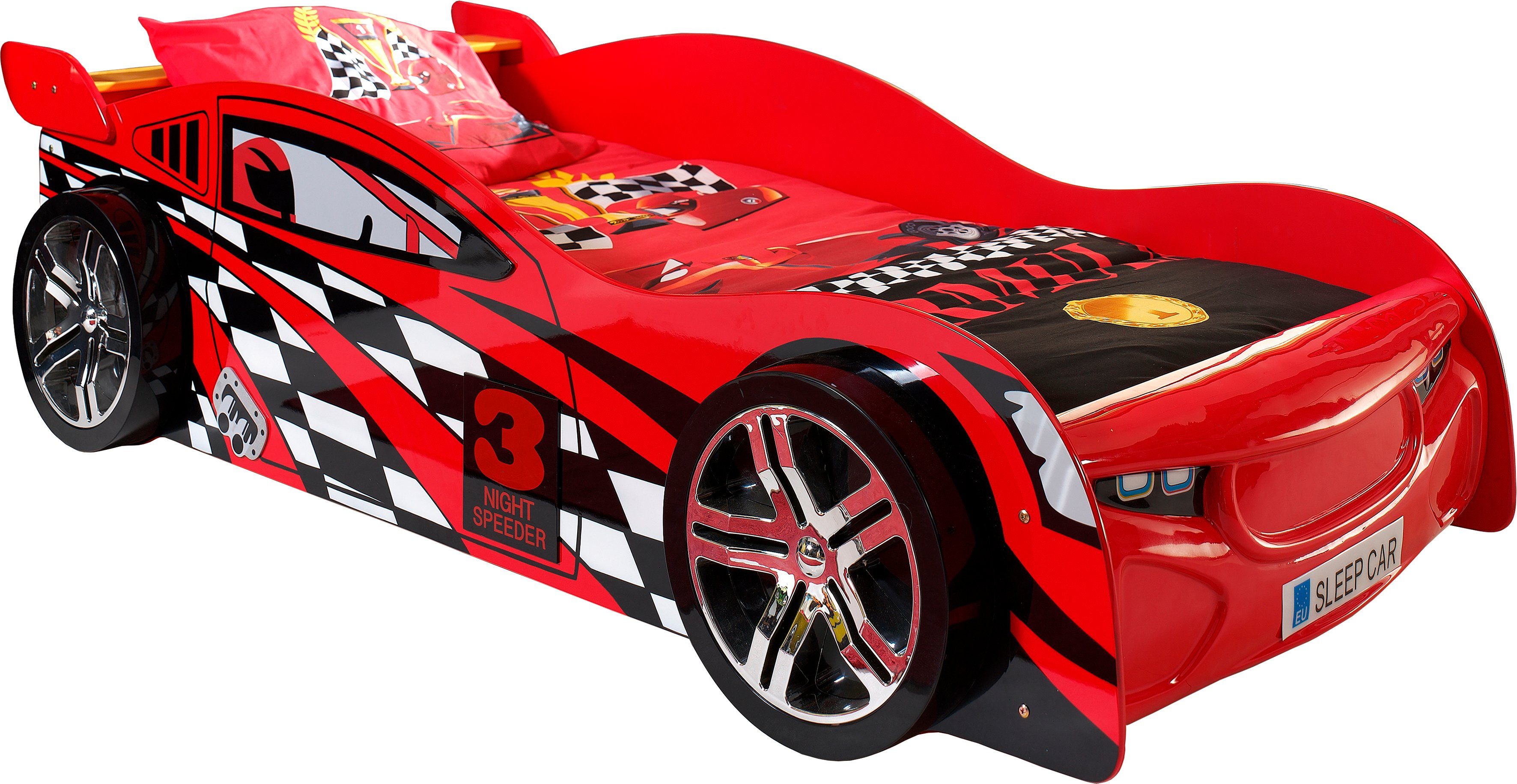 | Hinweis Ausstattung | Bettseiten nach vorne abgesenkt zum einfachen Einstieg Rennmotive auf den Bettseiten Räder in Felgen Optik feststehend |