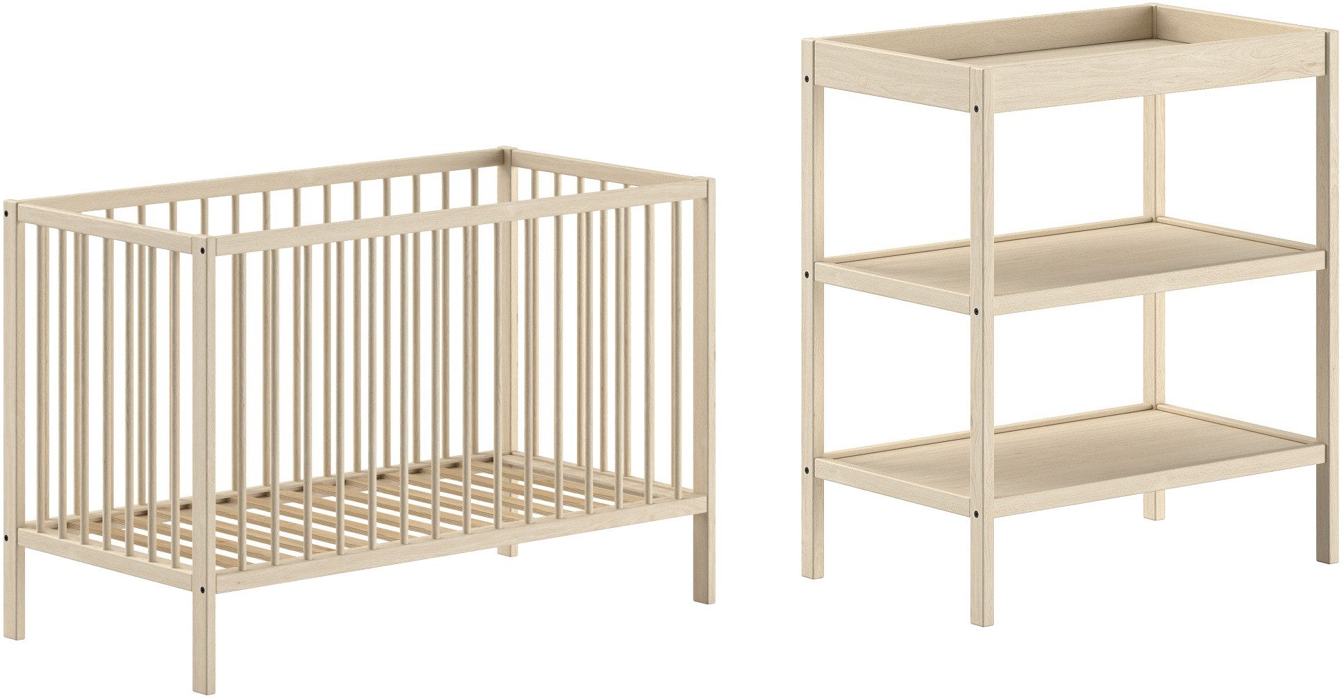 Wissenswertes | Babybett ohne Schlupfsprossen Lattenrost 3-fach höhenverstellbar Oben mit Umrandung Regal mit 2 geräumigen Fächern |