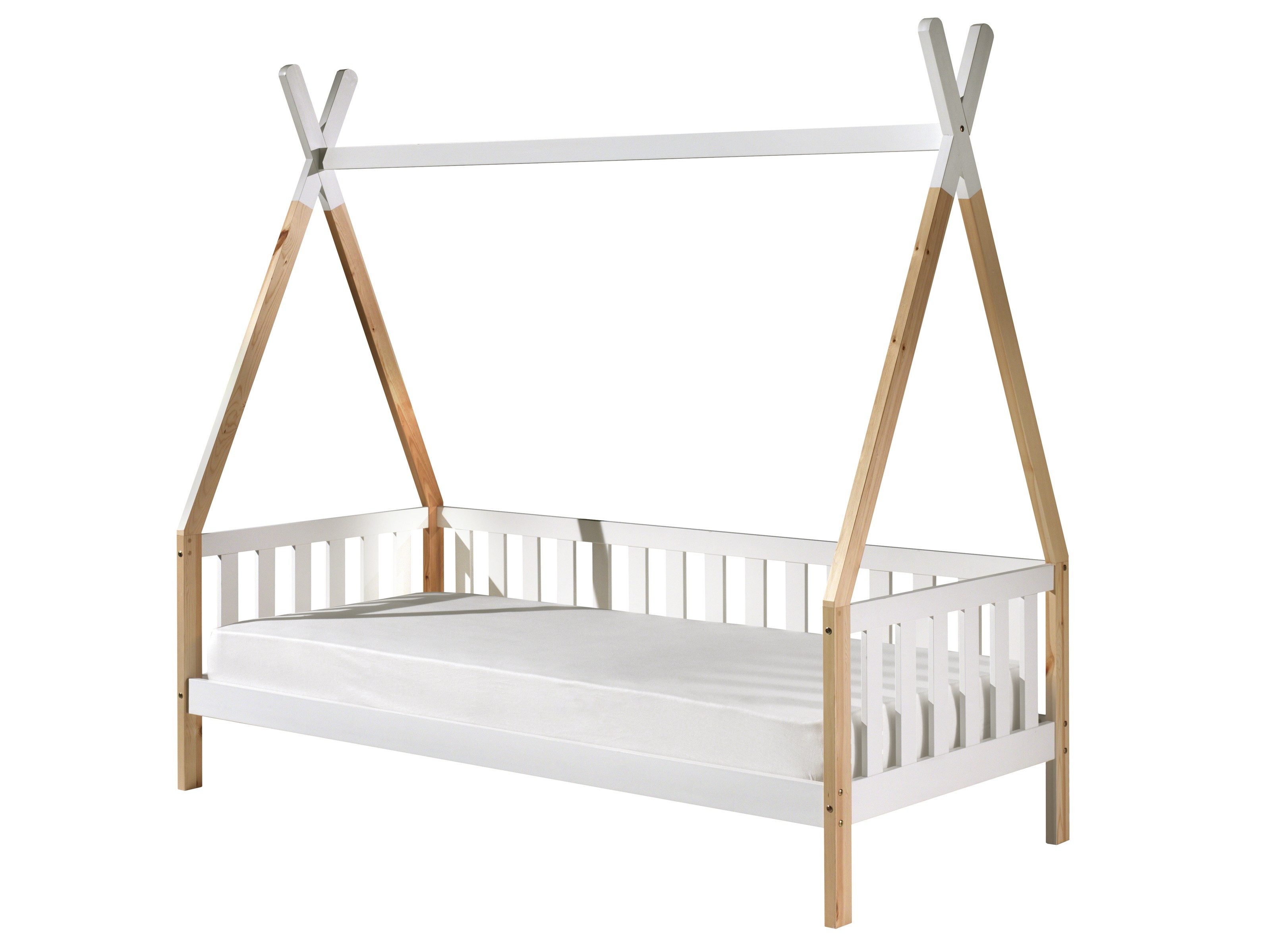 Lieferumfang | Tipi Kojen Bett mit Umrandung, Dachgestänge und Rolllattenrost, Liegefläche 90 x 200 cm, Ausf. Kiefer massive natur und weiß lackiert |