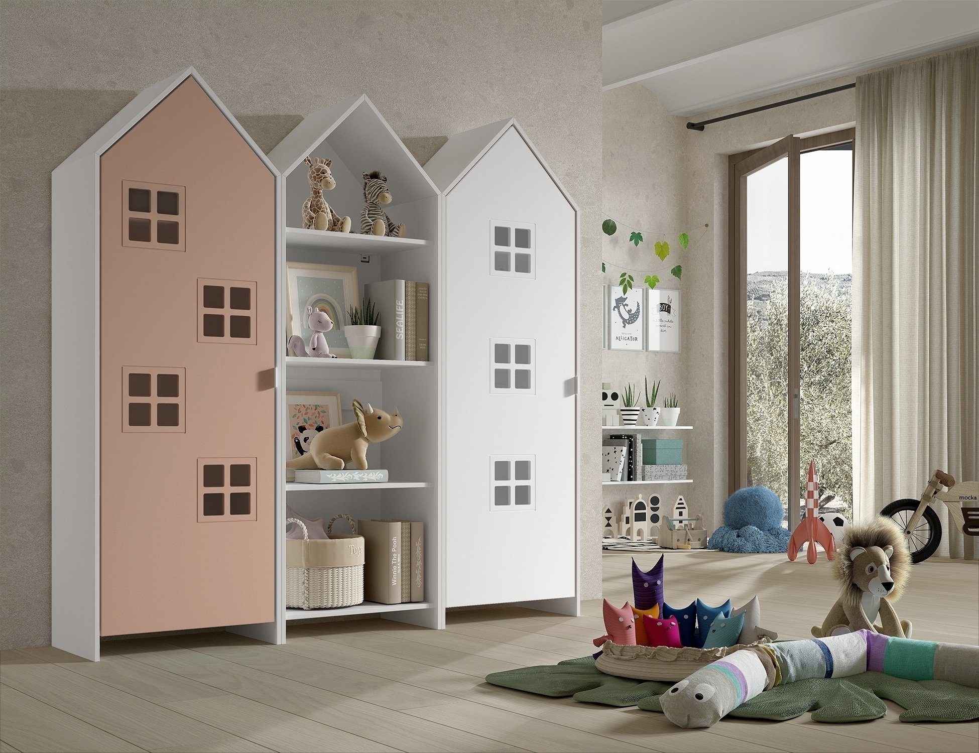 Lieferumfang | CASAMI BRUGES Set 2-tlg. best. aus: Regalschrank, Schrank 1-trg. mit Front in Pink u. Weiß |