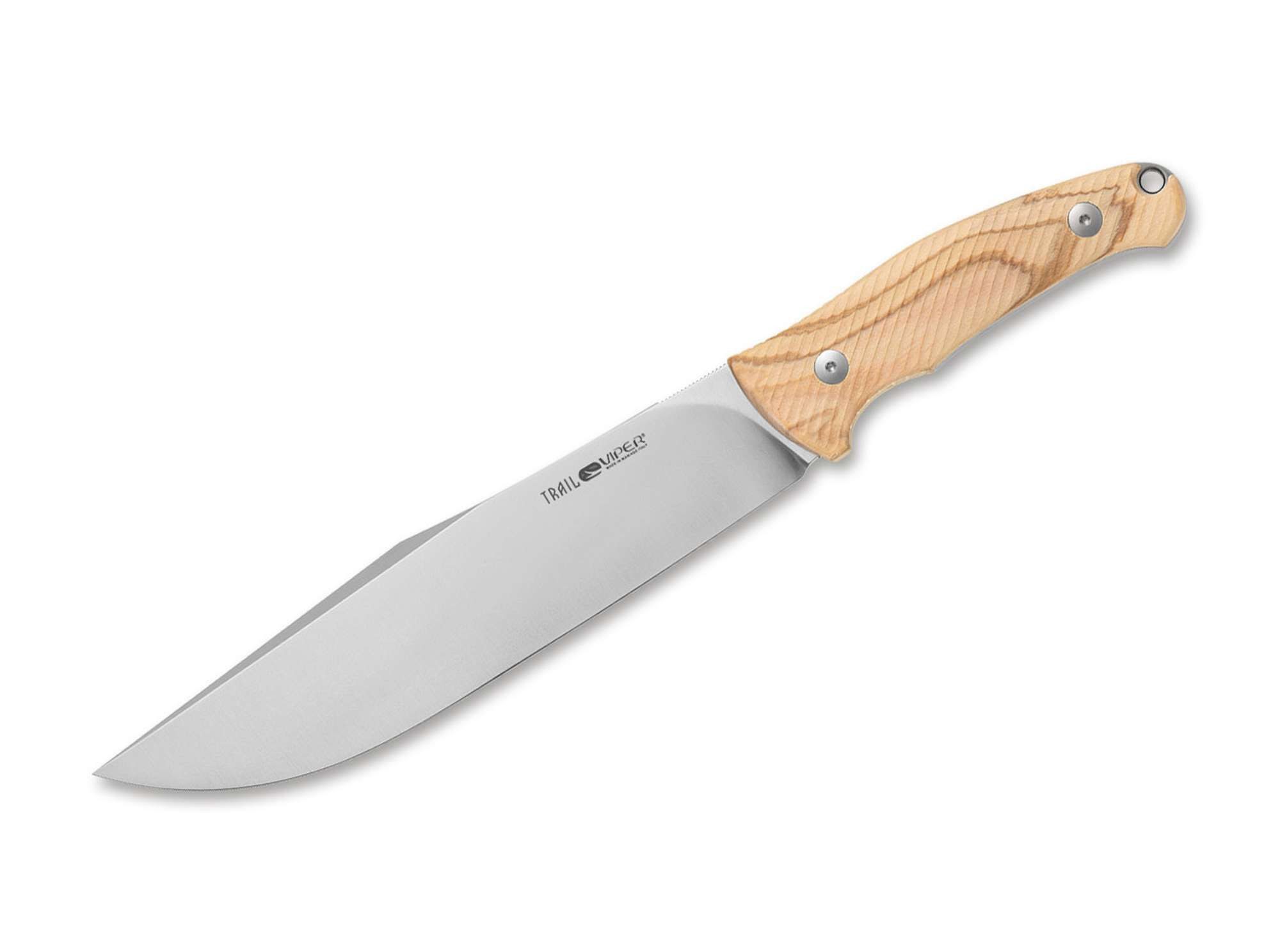 Jens Anso zeigt Outdoor-hungrigen Abenteurer mit dem Viper Trail den richtigen Pfad ins und durchs Grüne. Dank der ausgewachsenen N690 Klinge mit Satin-Finish ist das feststehende Messer ein unverzichtbarer Begleiter für Camping und Bushcrafting. Schnitzen, Hacken oder Schneiden, dank der Vollerlbauweise und ergonomischen Griffschalen aus Olivenholz ist ein zuverlässiges und ermüdungsfreies Arbeiten garantiert. Lieferung mit hochwertiger Lederscheide. Warnhinweise und Sicherheitsinformationen:Schnittverletzungen: Die häufigste Gefahr bei der Verwendung von Messern ist das Risiko von Schnittverletzungen. Scharfe Klingen können schnell durch Haut und Gewebe dringen.Abrutschen des Messers: Ein unsachgemäßes oder zu starkes Drücken kann dazu führen, dass das Messer abrutscht und unkontrollierte Bewegungen entstehen, die Verletzungen verursachen können.Verletzungen durch Stürze: Messer sollten niemals ungesichert oder in der Nähe von Tischkanten abgelegt werden, um zu verhindern, dass sie herunterfallen und jemanden verletzen.Stumpfe Messer: Stumpfe Messer stellen ein größeres Verletzungsrisiko dar, da sie mehr Kraft erfordern und leichter abrutschen können. Messer sollten daher regelmäßig sachgemäß nachgeschärft werden.Nicht bestimmungsgemäße Nutzung: Das Verwenden eines Messers für Aufgaben, für die es nicht vorgesehen ist (z.B. als Hebelwerkzeug), kann nicht nur die Klinge beschädigen, sondern auch zu Unfällen führen.