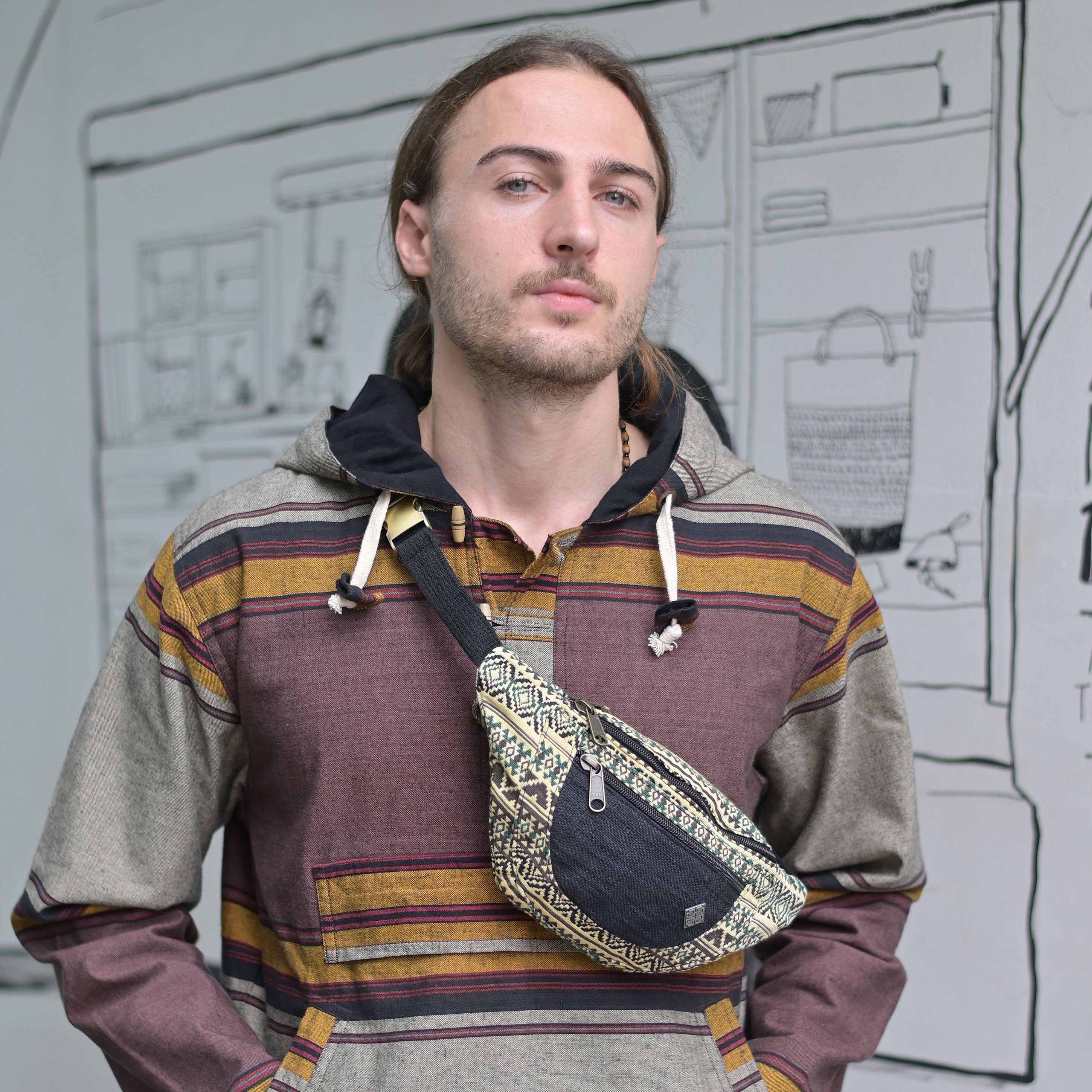MATERIAL: Der Bauchtasche bunt schwarz wird aus Hanf und Baumwolle hergestellt. Das Material des Bauchtasche Hanf ist strapazierfähiges Softshell aus 100 % Hanfgewebe mit Tribal-Details und natürlichem Futter aus 100 % Baumwolle; so geben wir dir einen praktisch stylischen Bauchtasche Damen stylisch