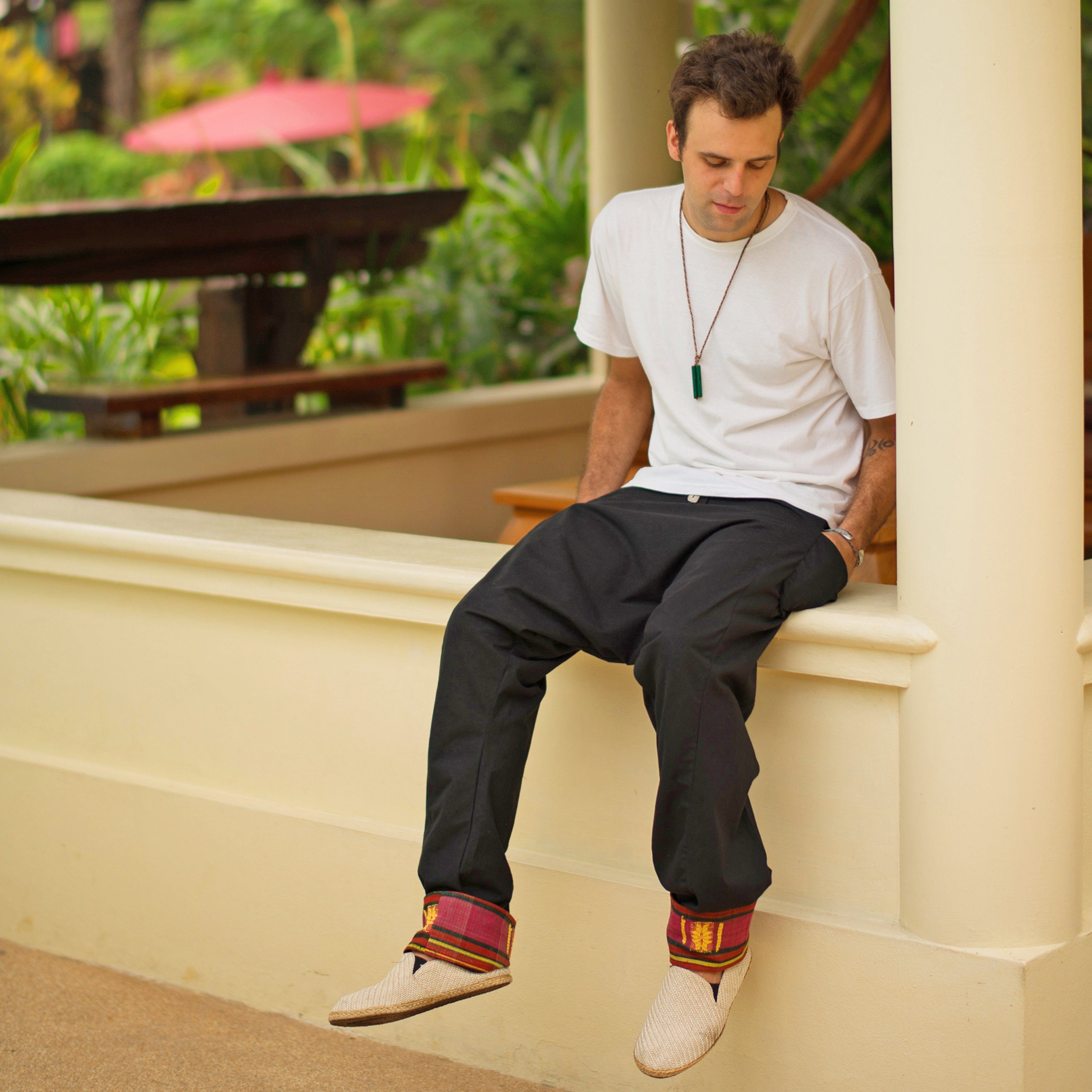 DETAILS: Unsere Goa Hose Herren und Pumphose Herren haben einen mitteltiefen Schritt, 2 Eingrifftaschen, ist an den Knöcheln umschlagbar und mit handgearbeitetem Hilltribe-Muster aus Nordthailand verziert. Durch den elastischen Hüftbund passt unsere Haremshosen einer breiten Palette von Größen. Damit sind unsere Hippie Hose Herren perfekt für dich und deinen vielseitigen Alltag.