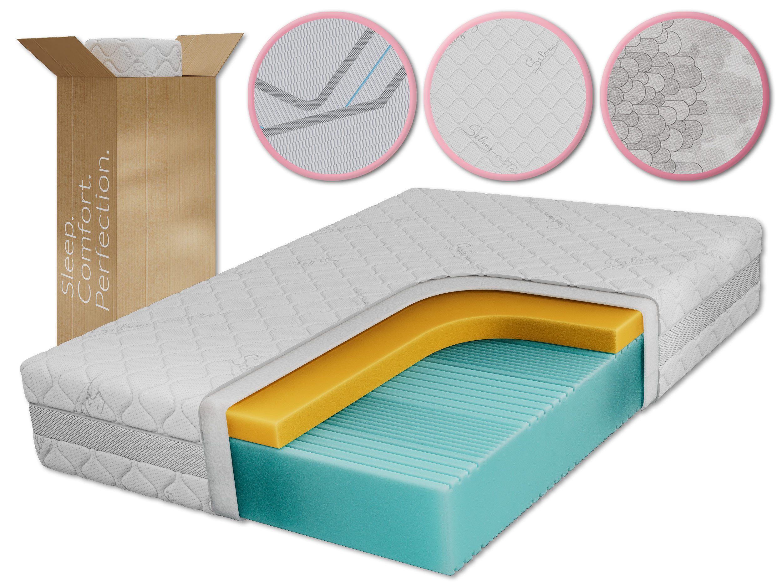 Die Schaummatratze Orio bietet modernen Schlafkomfort ohne Federn – ideal für alle, die auf klassische Federkerne verzichten möchten. Ihr zweischichtiger Aufbau aus 5 cm Visco-Schaum und 18 cm HR30-Schaum passt sich optimal an die Körperform an, entlastet gezielt Druckpunkte und unterstützt eine gesunde Wirbelsäulenhaltung – perfekt bei Rückenproblemen oder für Seitenschläfer.