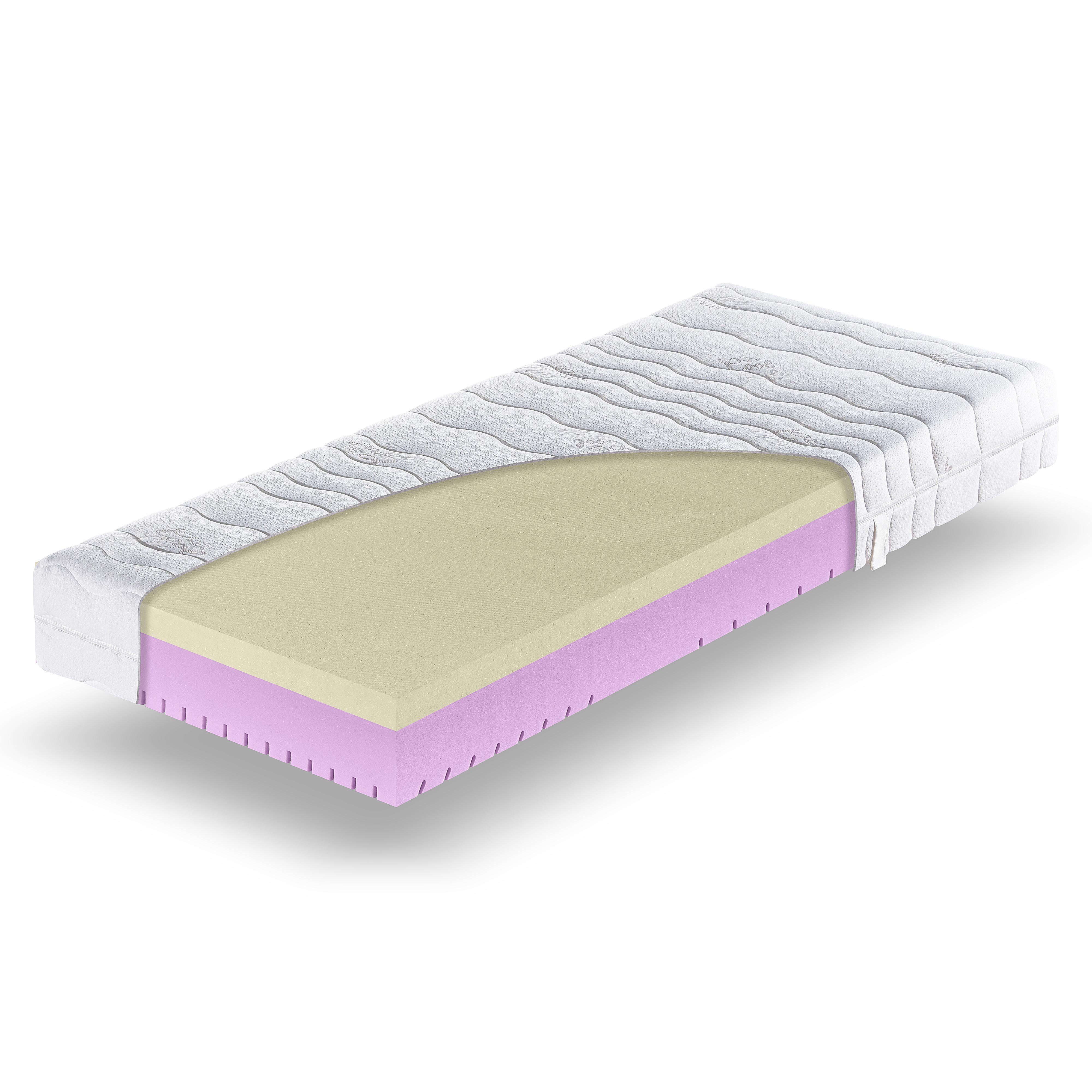 Eigenschaften Matratze | für alle Lattenroste geeignet, Hervorragendes Schlafklima durch offenporige Zellstruktur, die eine hohe Luftdurchlässigkeit gewährleistet, Atmungsaktiv, feuchtigkeits- und temperaturregulierend,Guter Liegekomfort und gute ergonomische Anpassung,Softelastische Körperunterstützung, punktelastisch und dauerelastisch,Langlebig und formbeständig |